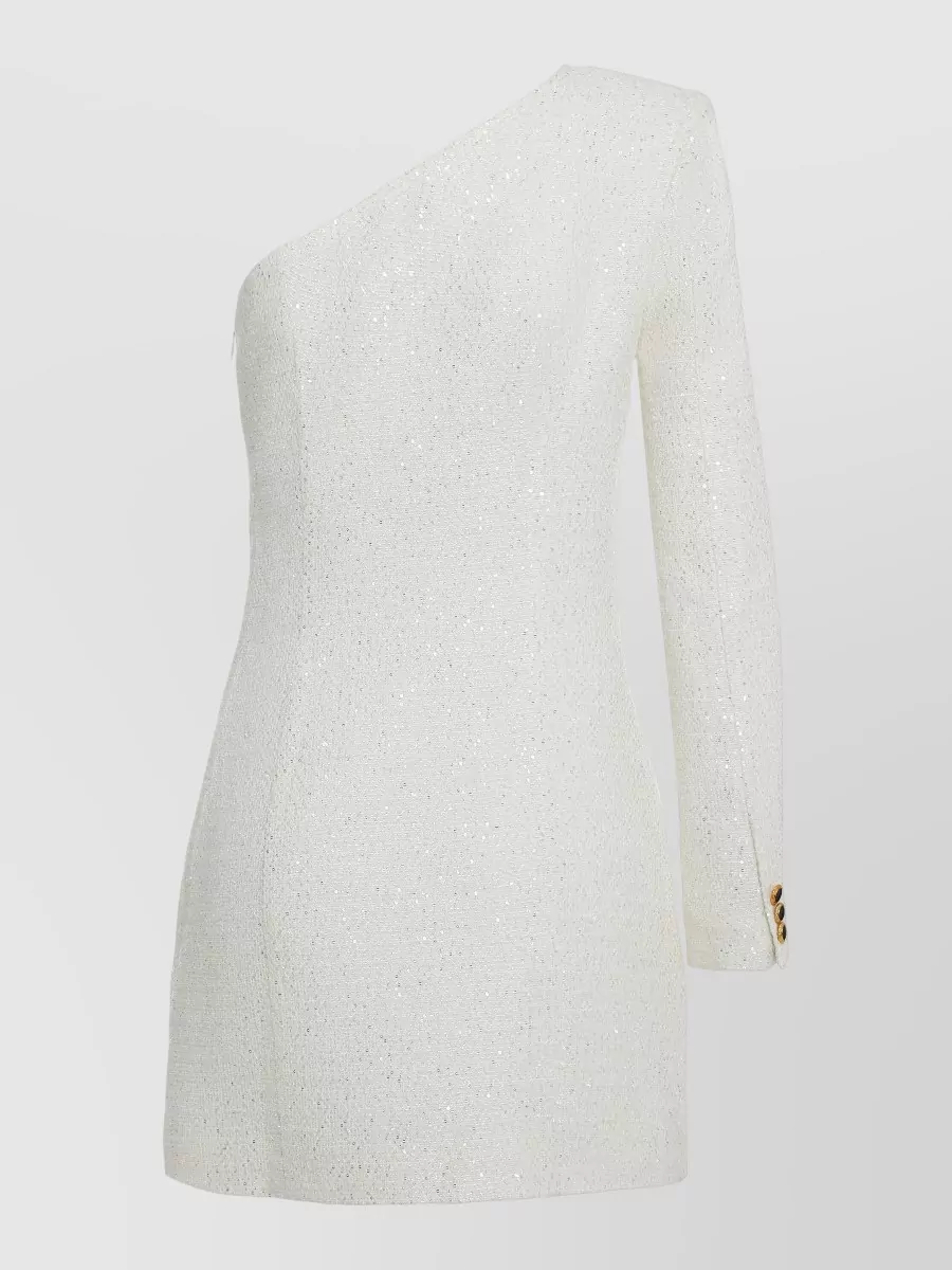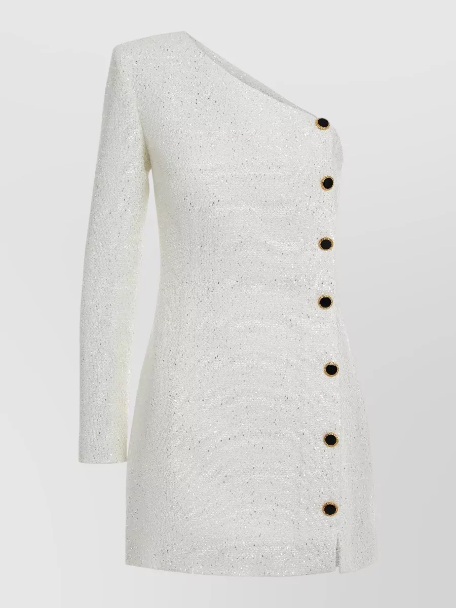 knitted mini dress asymmetric neckline sleeve