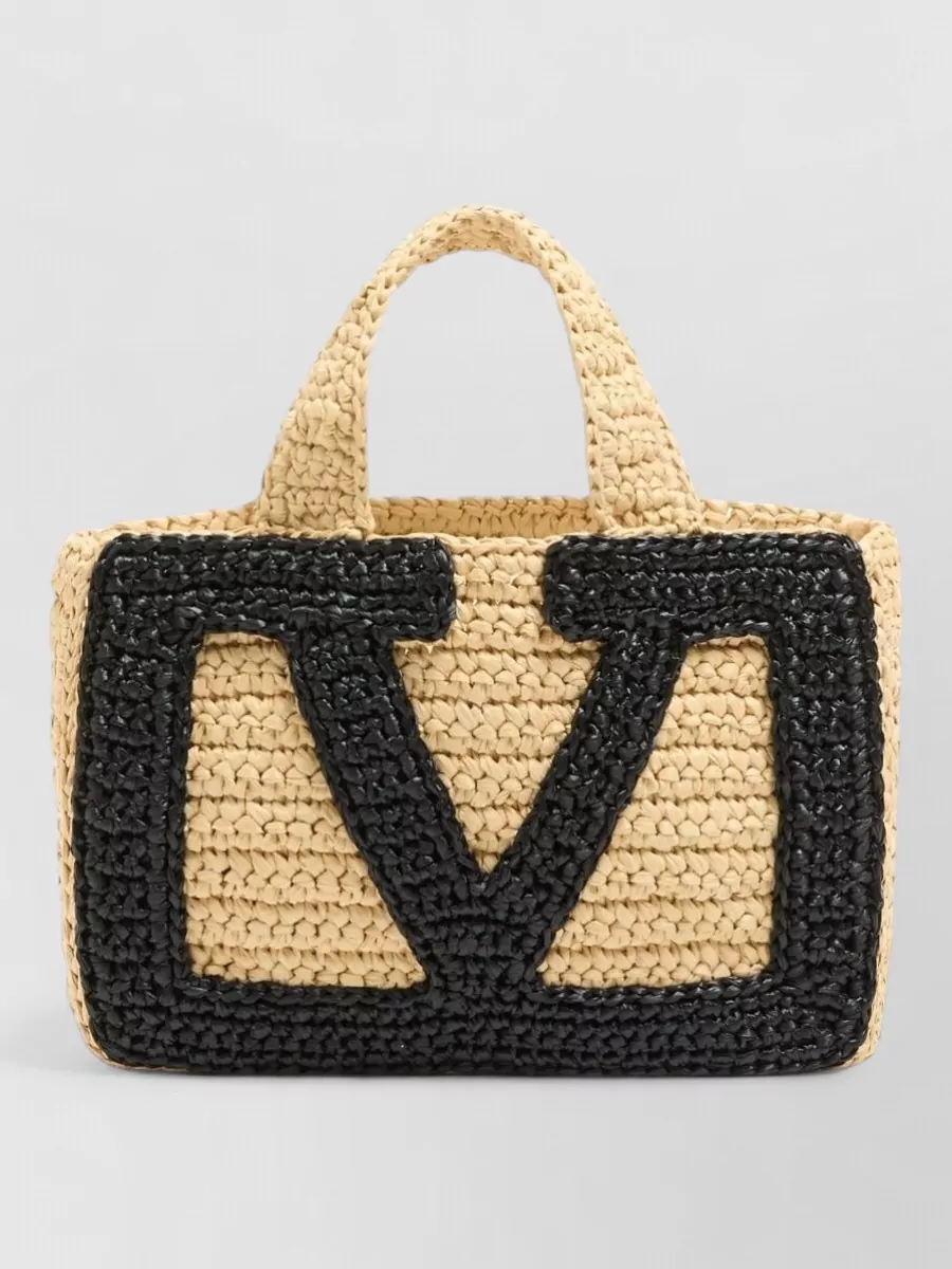 woven paisley motif raffia tote bag