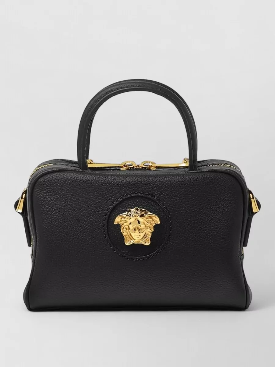sicily leather handbag with iconic logo plate