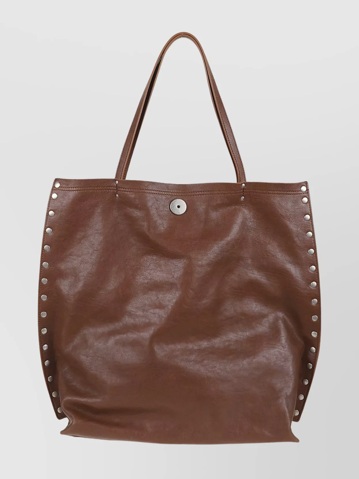 large leather tote bag with silver hardware