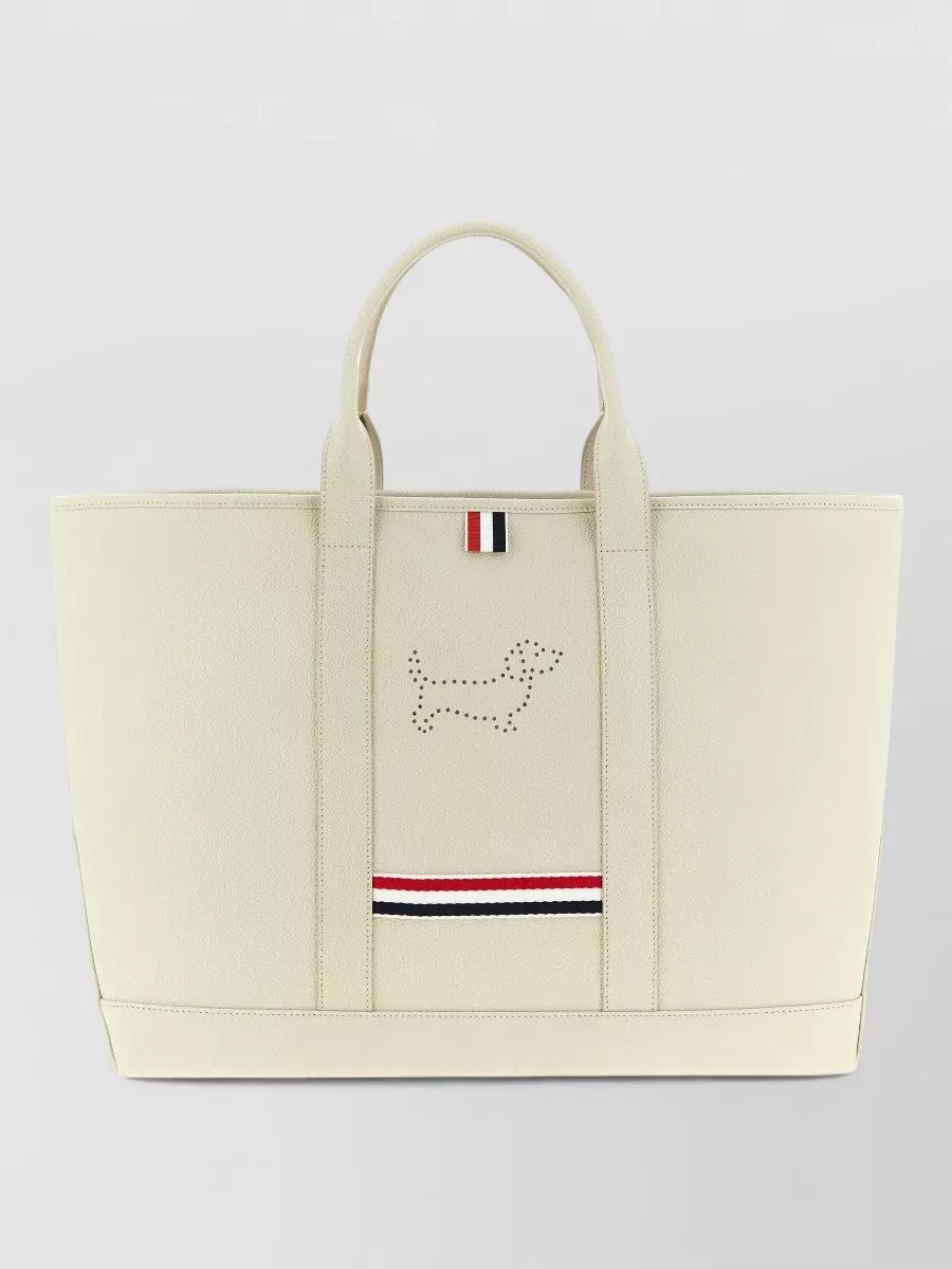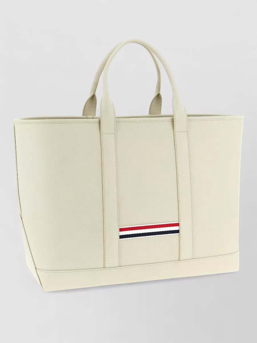 Thom Browne striped detail medium leather tote