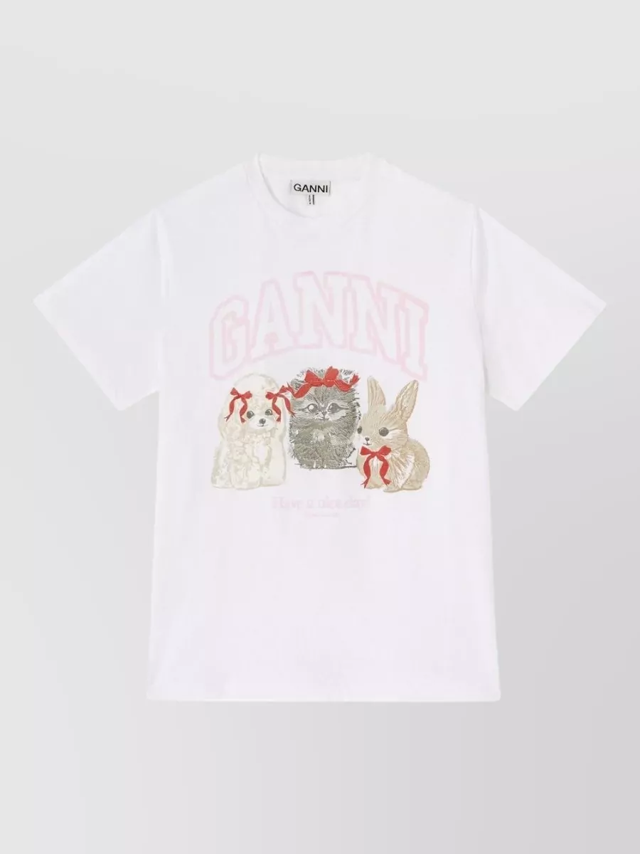 Ganni crew neck graphic print short sleeves t-shirt