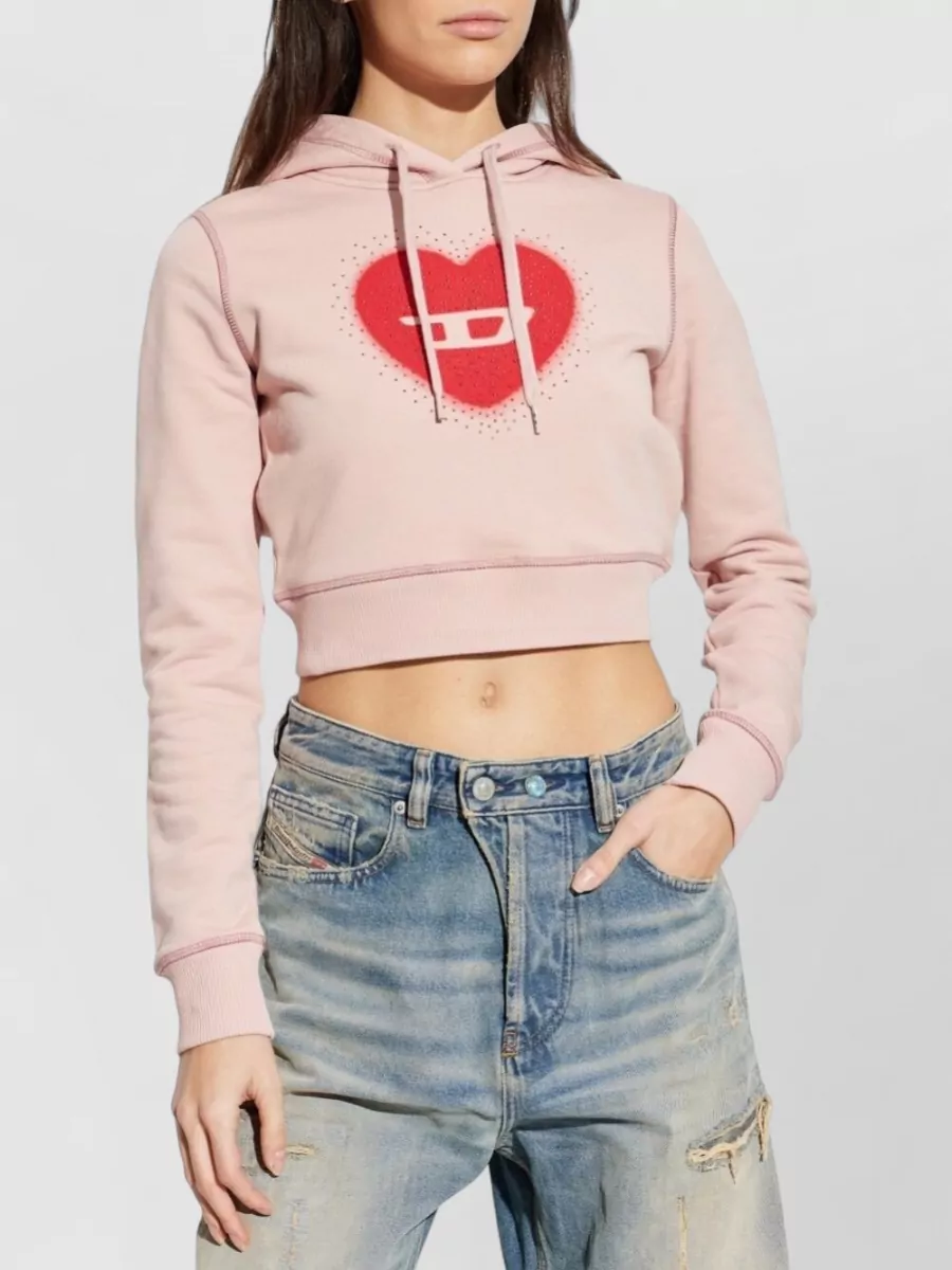 Diesel cropped cotton hoodie heart graphic hood