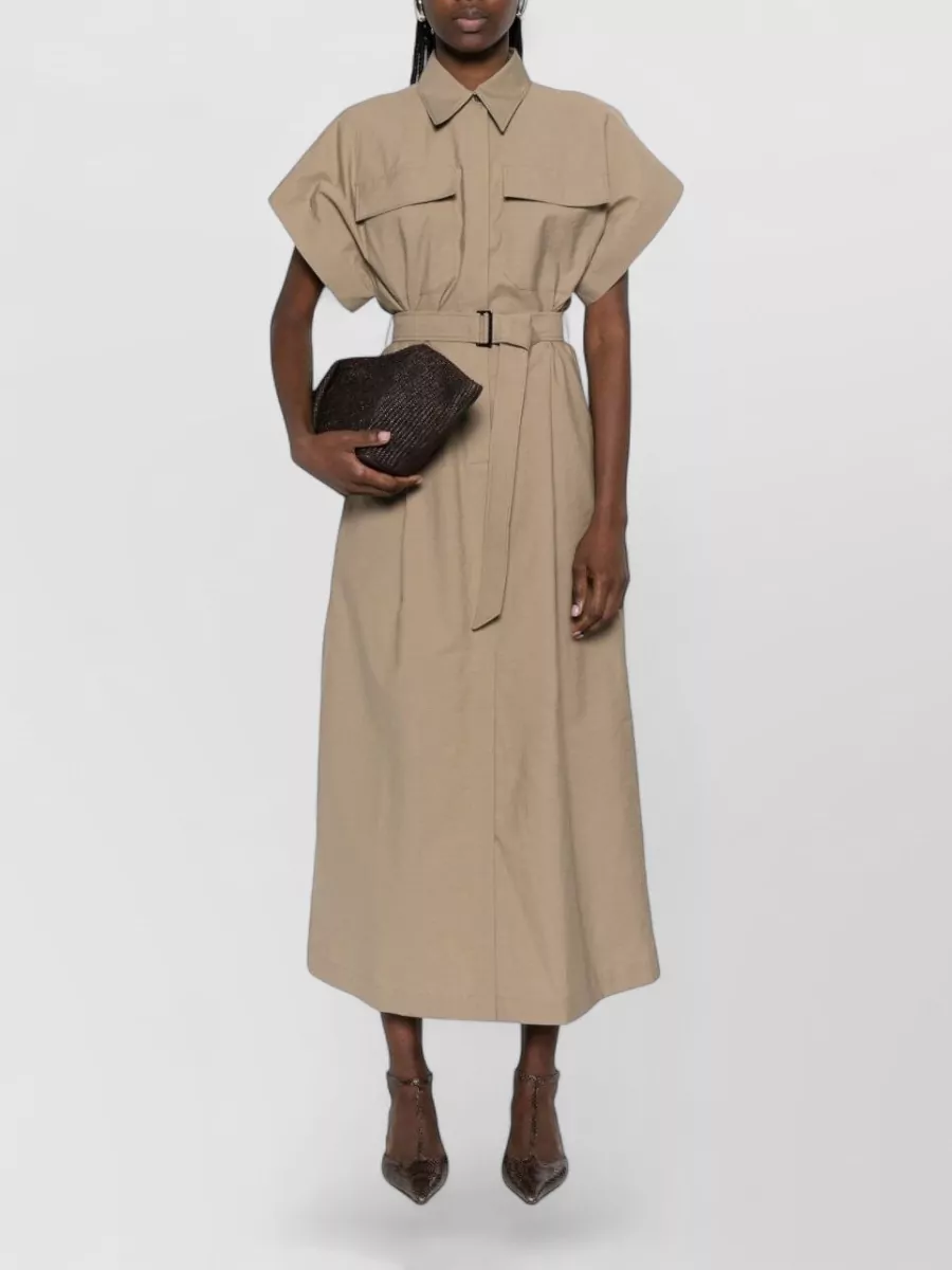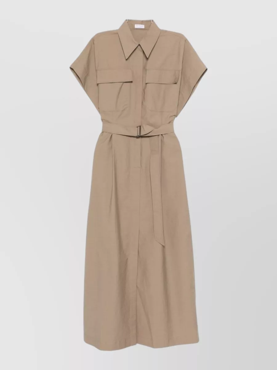 Brunello Cucinelli long cotton dress belted waist pockets