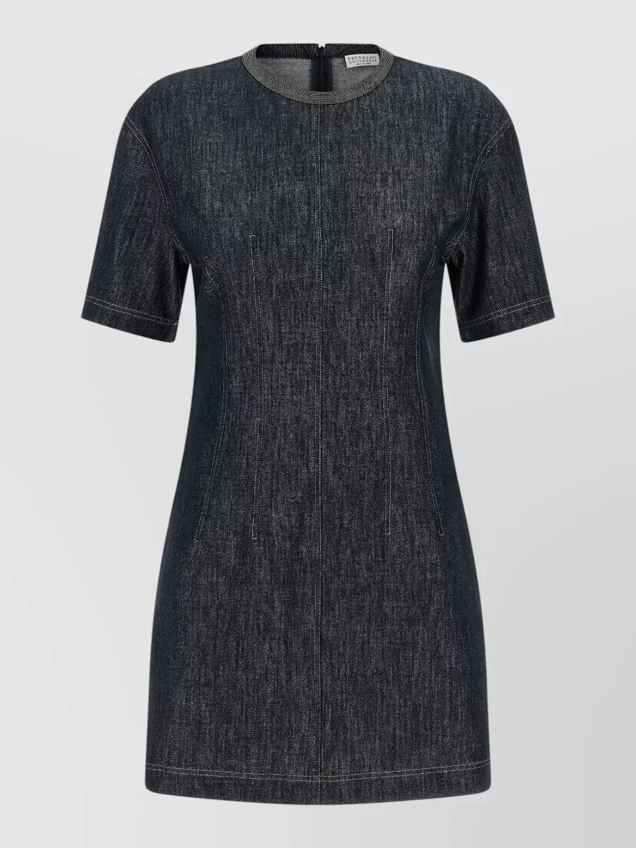 Brunello Cucinelli monile denim dress short sleeves round neckline