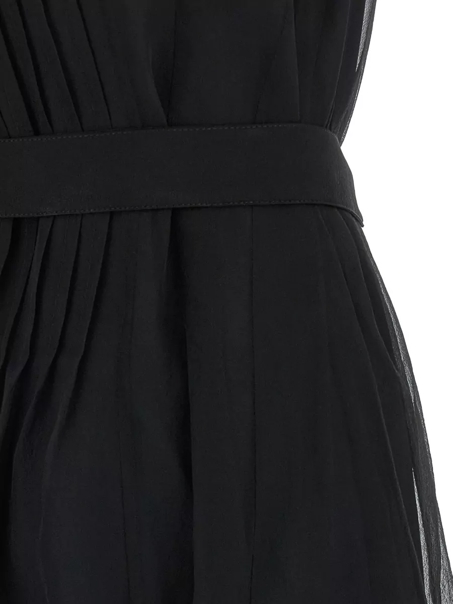 silk dress belted waist maxi length