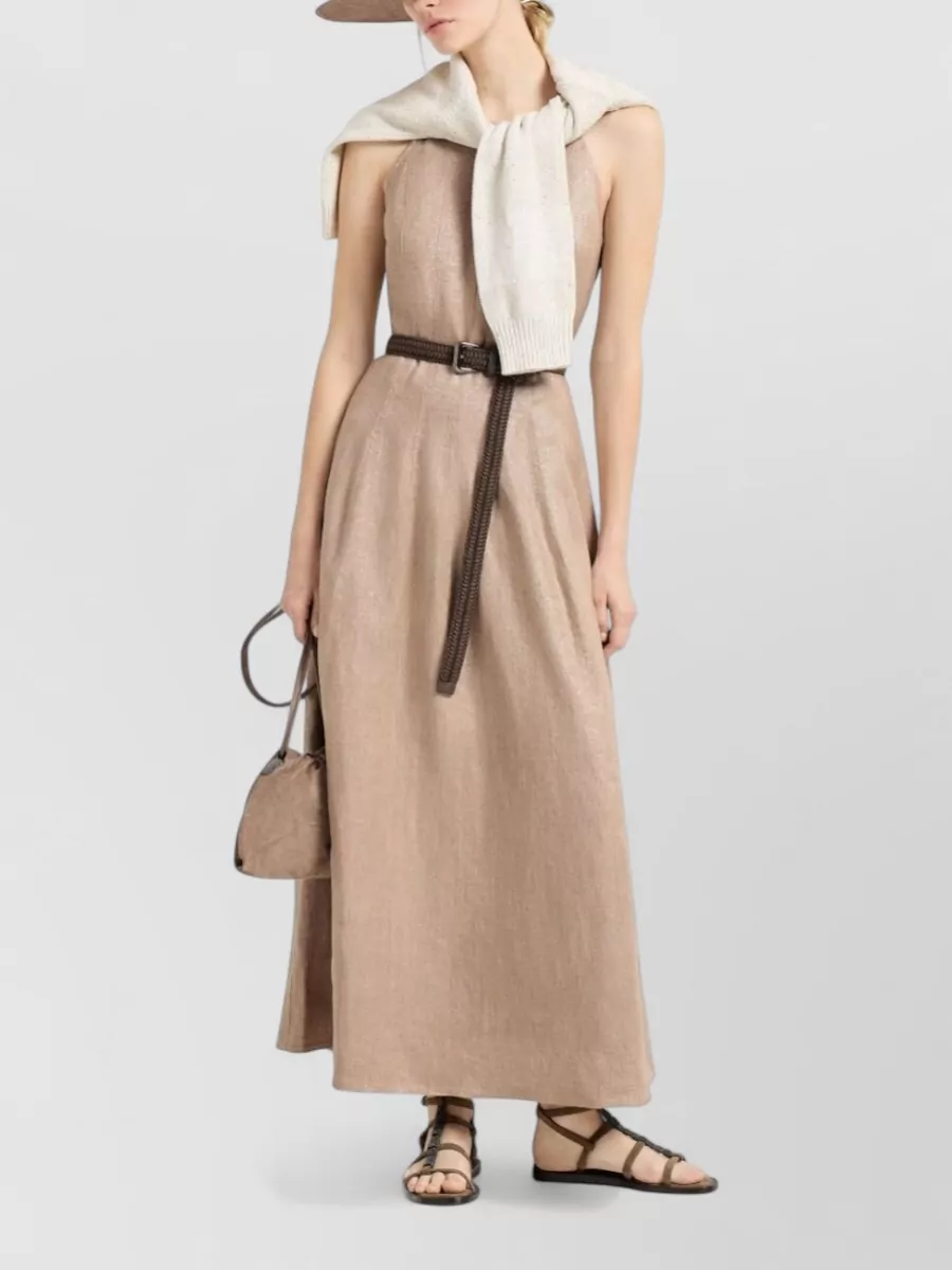 Brunello Cucinelli linen blend halter midi dress sleeveless