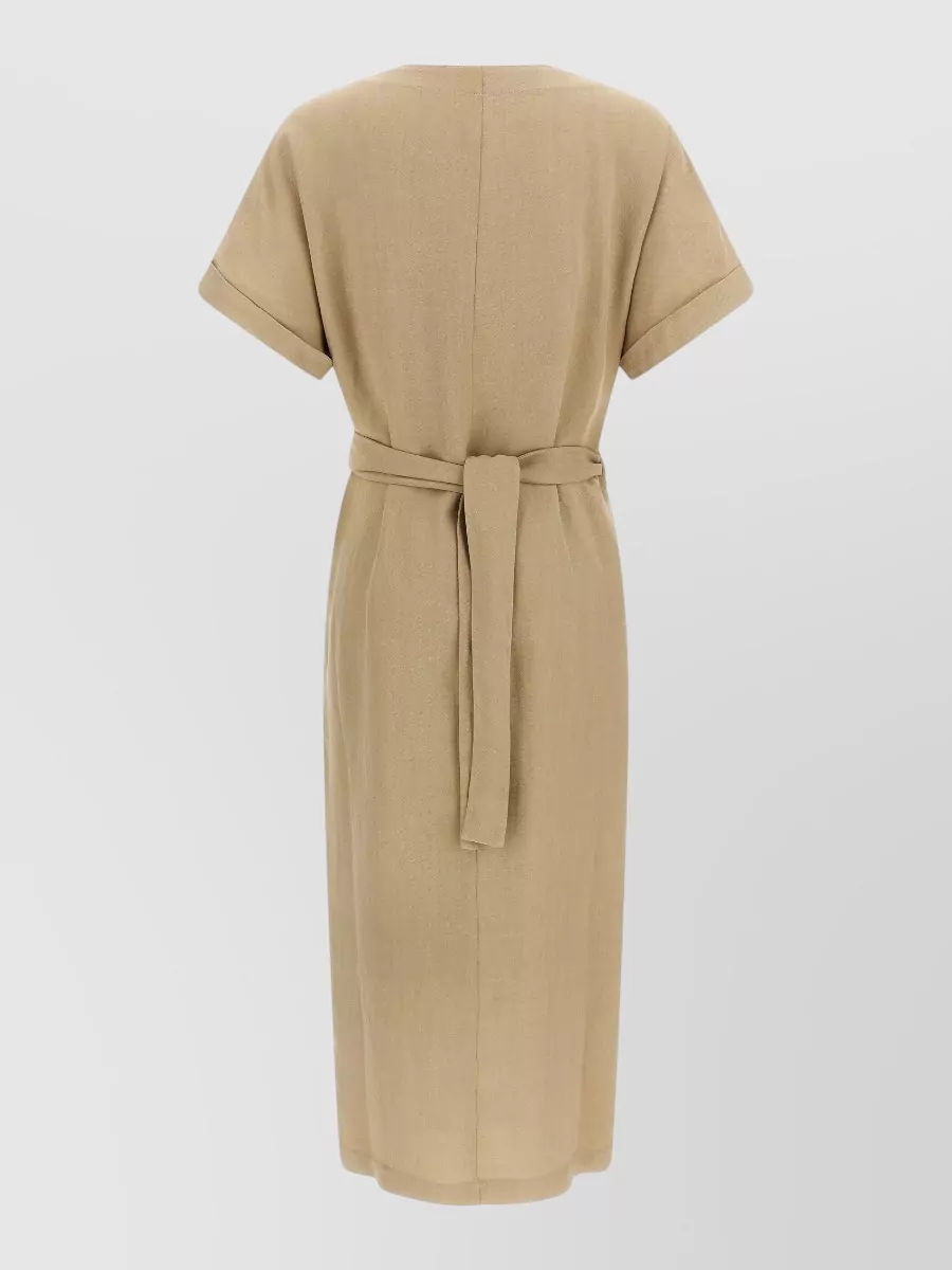 Brunello Cucinelli short sleeve belted wrap dress v neckline