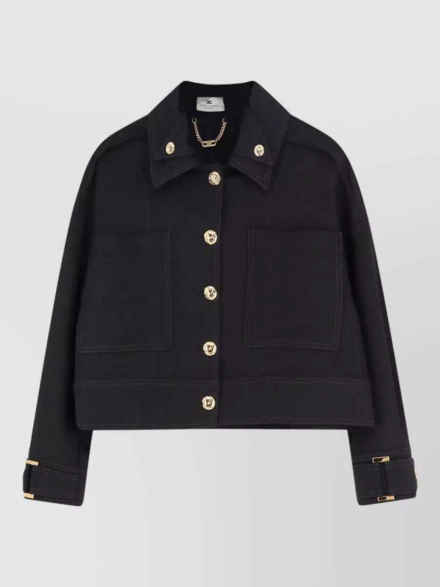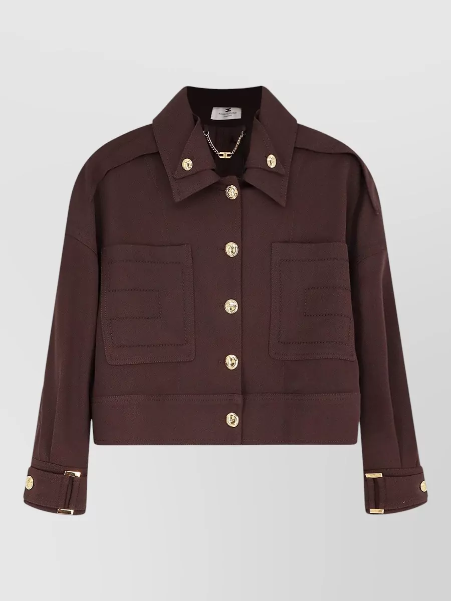 Elisabetta Franchi short jacket gold buttons patch pockets belt