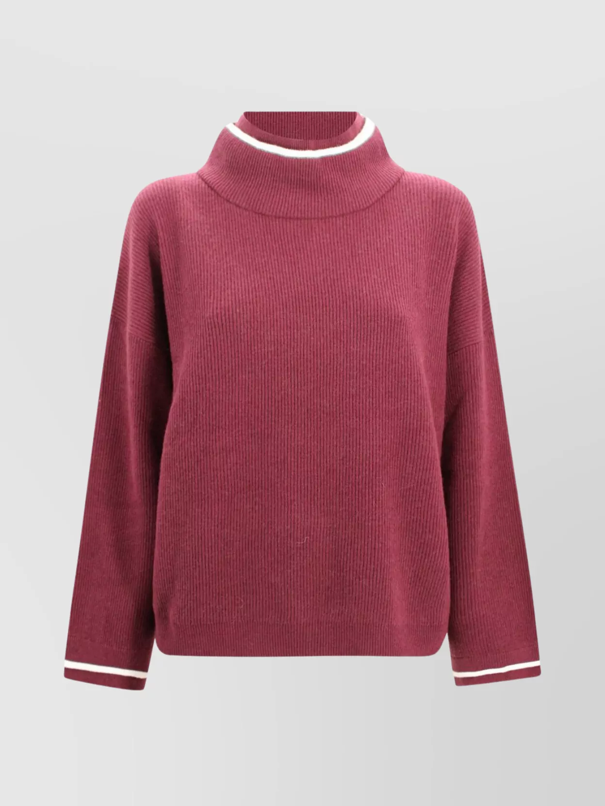 Brunello Cucinelli ribbed mock neck sweater with contrast trim