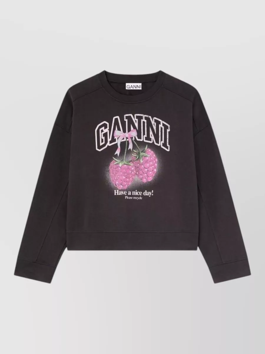 Ganni organic cotton graphic print crewneck sweatshirt