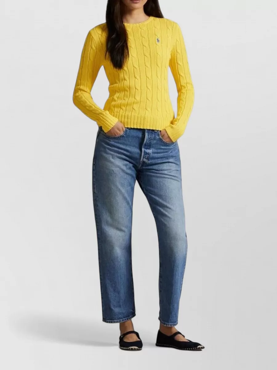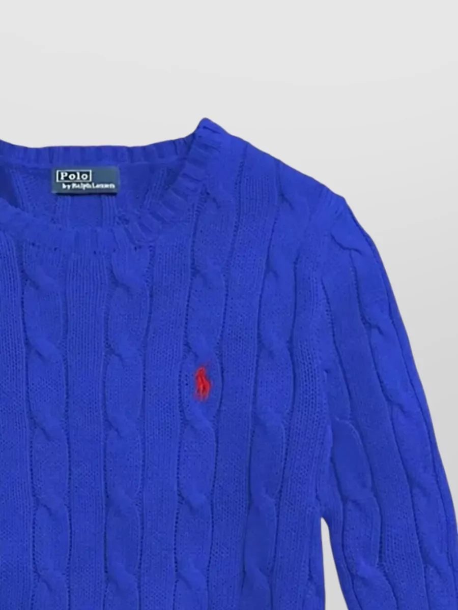 Polo Ralph Lauren cable knit crewneck sweater with ribbed cuffs and hem