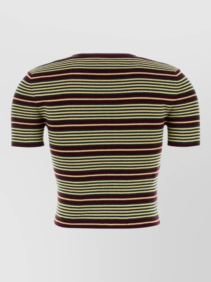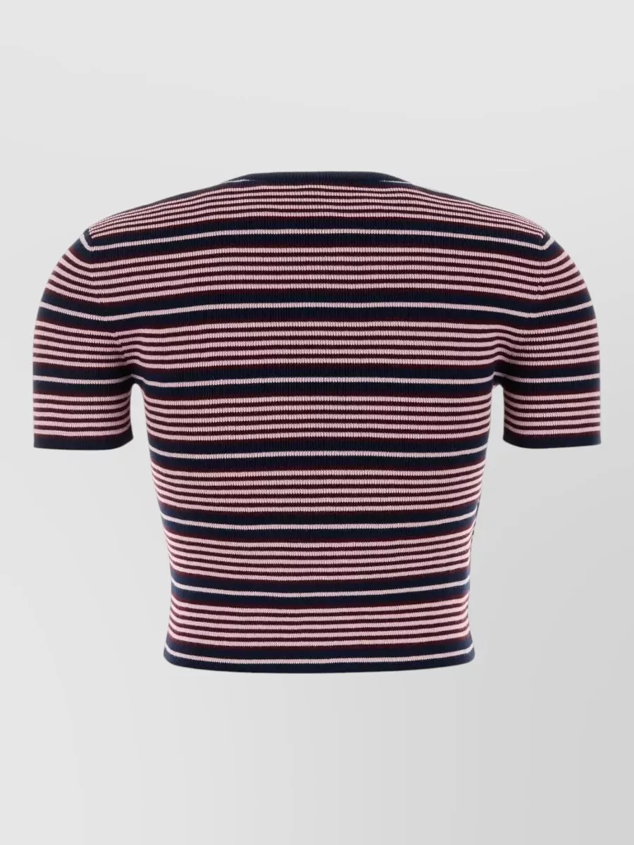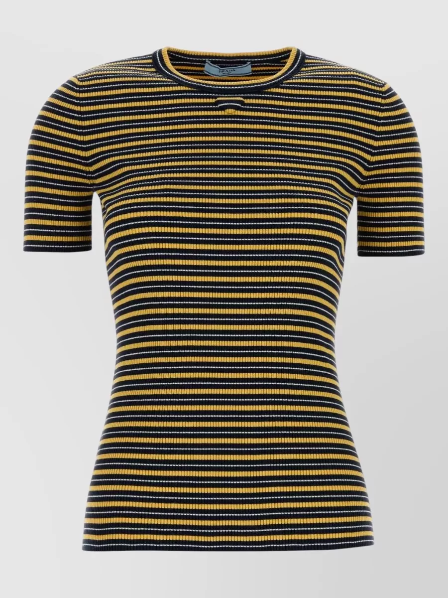 Prada virgin wool ribbed-knit v-neck short-sleeve knitted top