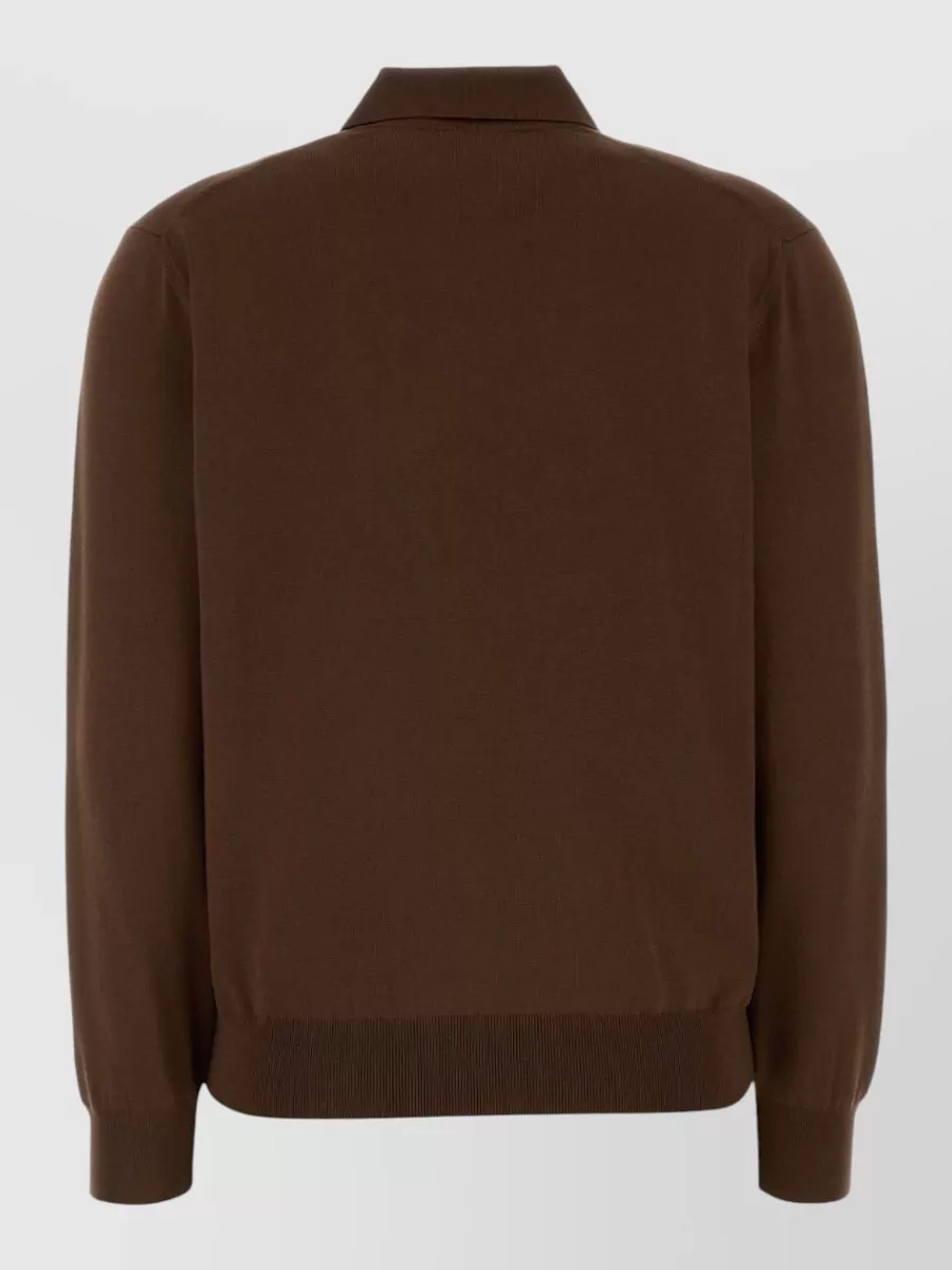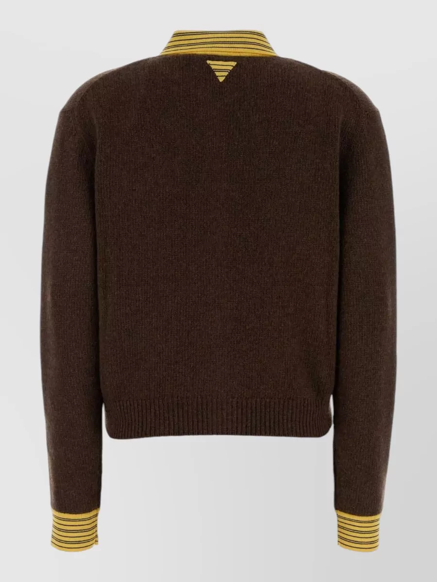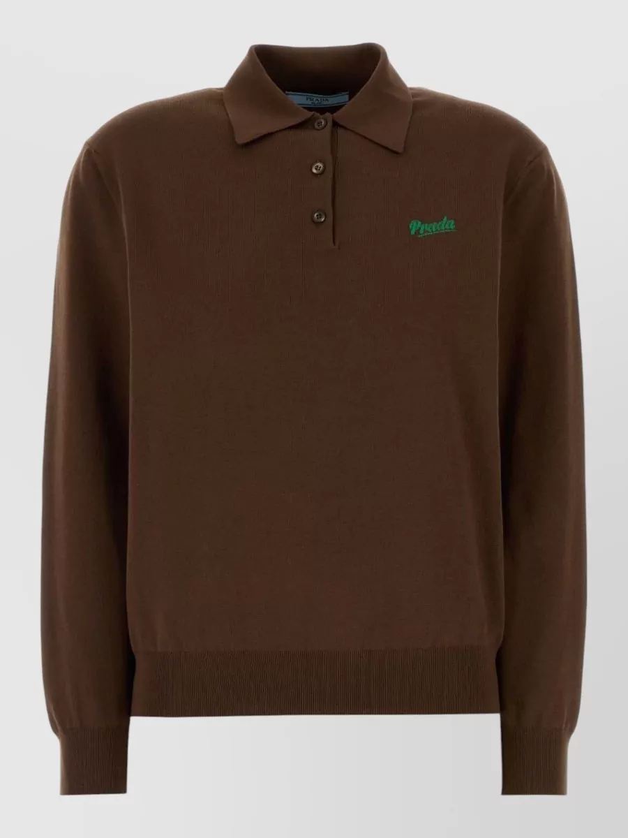 Prada virgin wool ribbed-knit v-neck short-sleeve knitted top