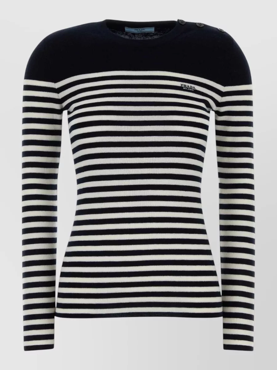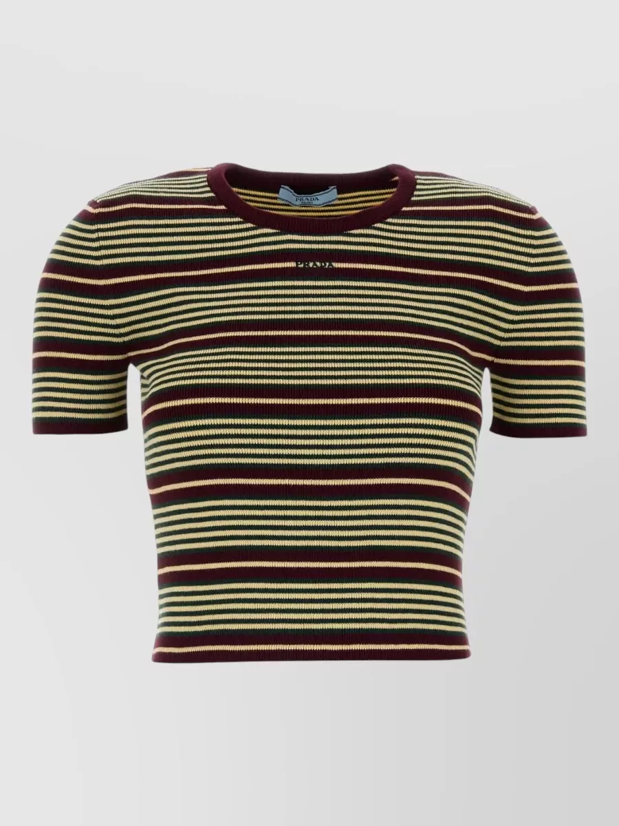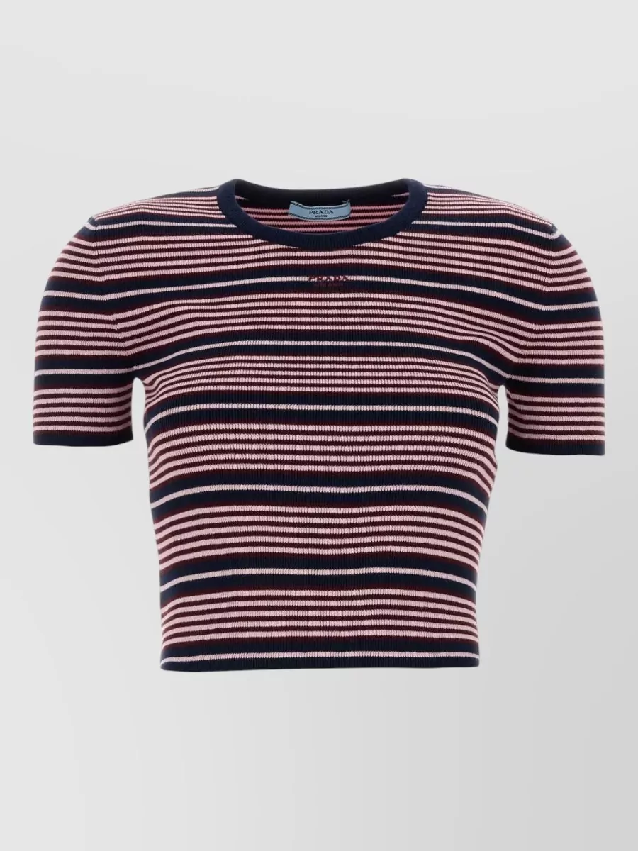 Prada crystal-embellished ribbed short-sleeve cashmere wool pullover