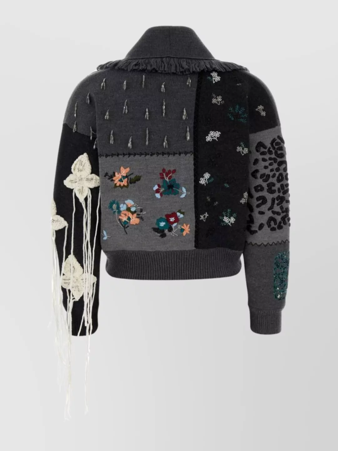 Brunello Cucinelli textured knit cashmere cardigan ribbed collar embellishments