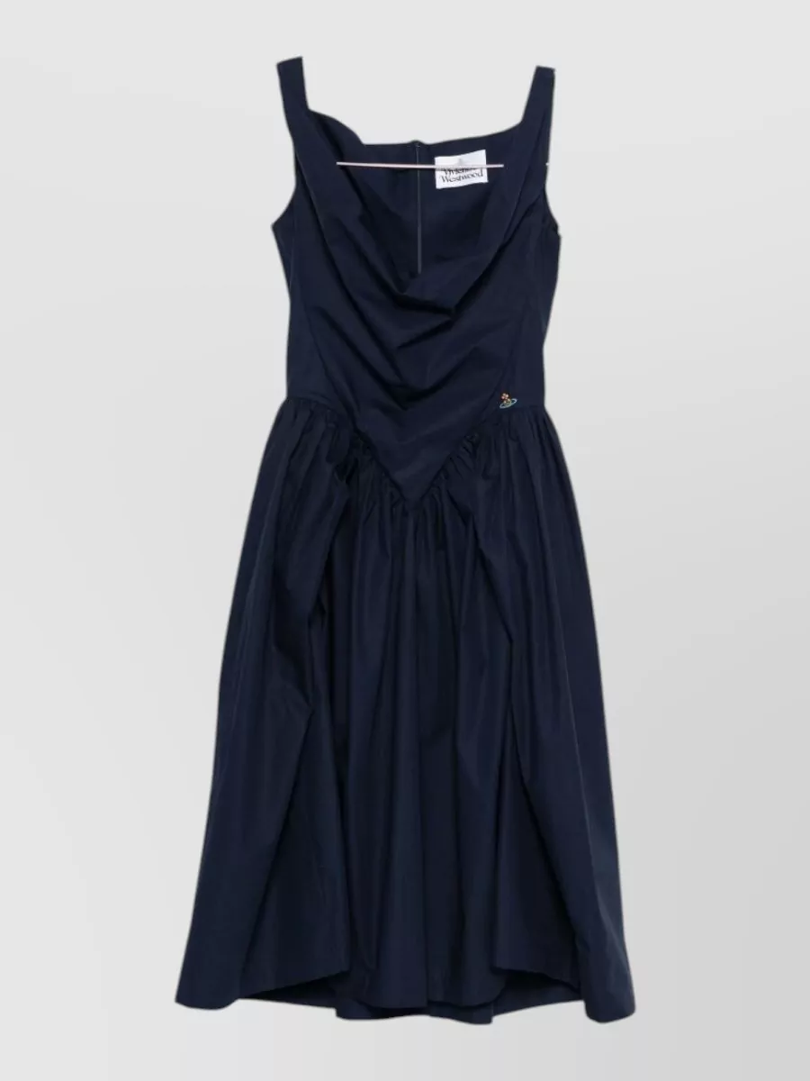 Draped neckline waist gathered sleeveless dress