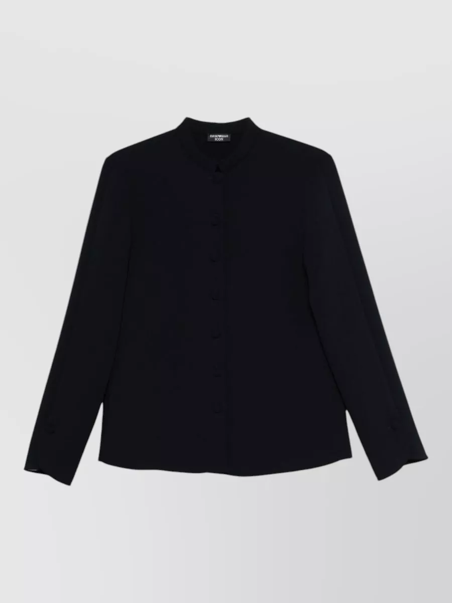 Discover more EMPORIO ARMANI Tops EMPORIO ARMANI Clothing TopsFollows a regular fit through the bust and waist with classic long sleeves and buttoned mandarin collar detailing