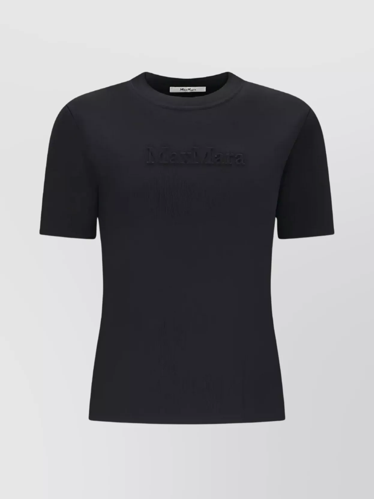 Semi-fitted through the bust and waist with a classic crew neckline and short set-in sleeves