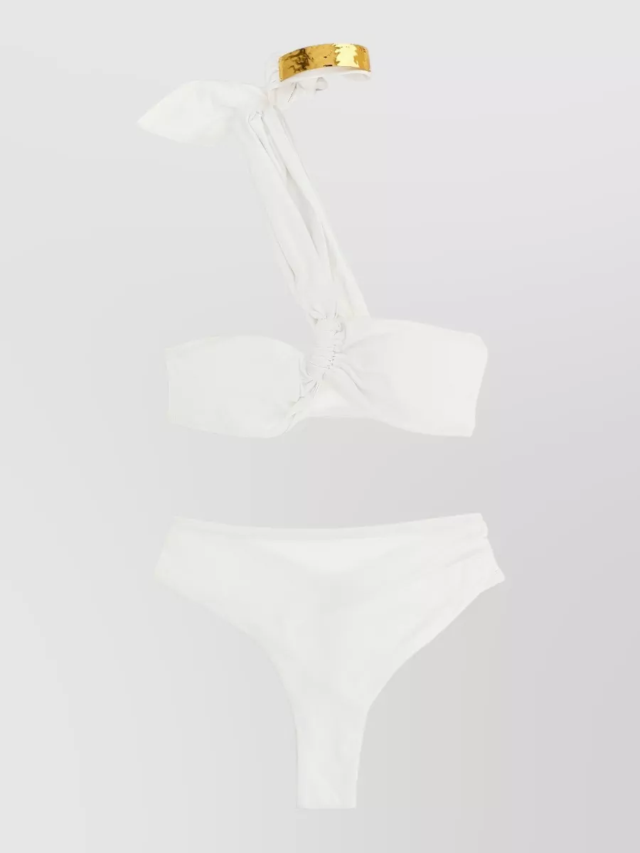 Elisabetta Franchi bikini jewel asymmetrical halter neck gold accents