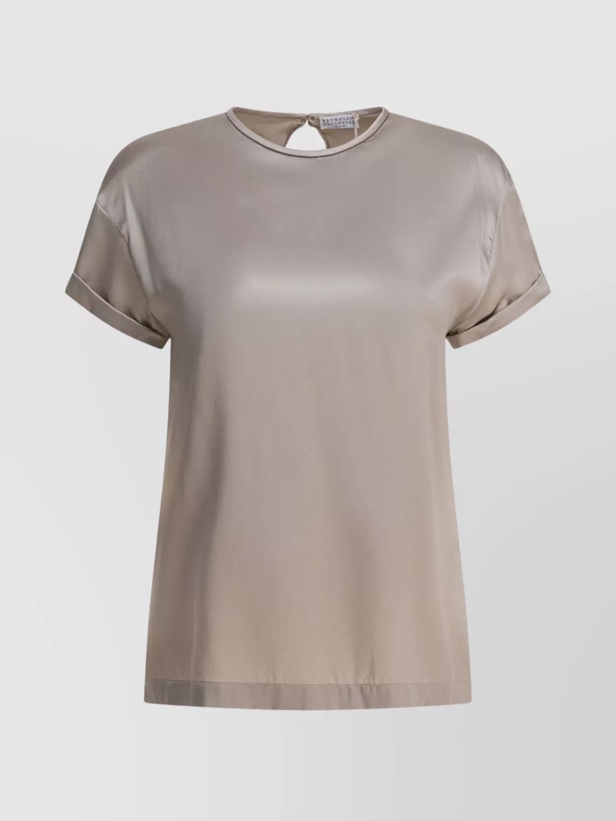 Brunello Cucinelli keyhole back round neck satin finish tops