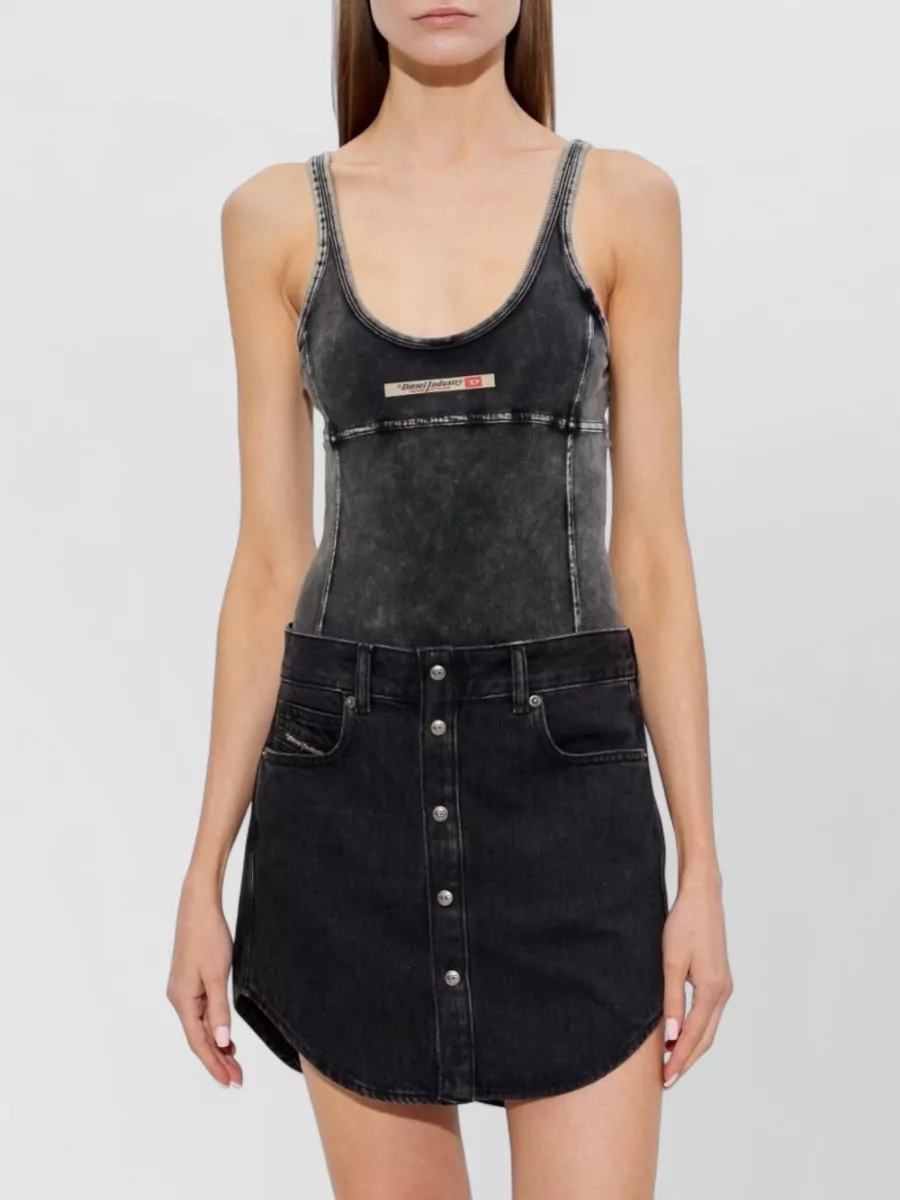 Diesel bodysuit contrast stitching faded scoop neckline