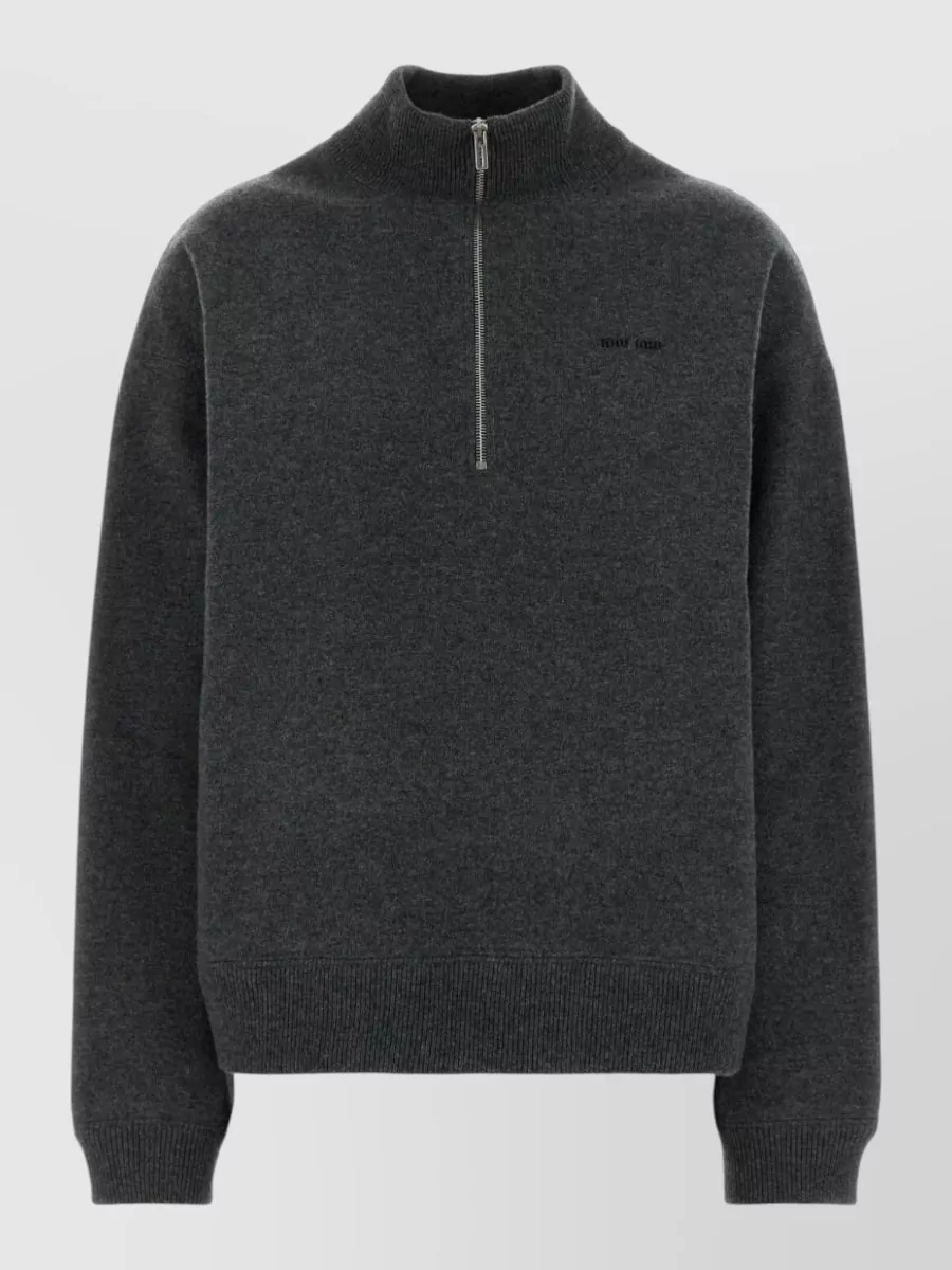 Miu Miu cashmere sweater high collar ribbed trims
