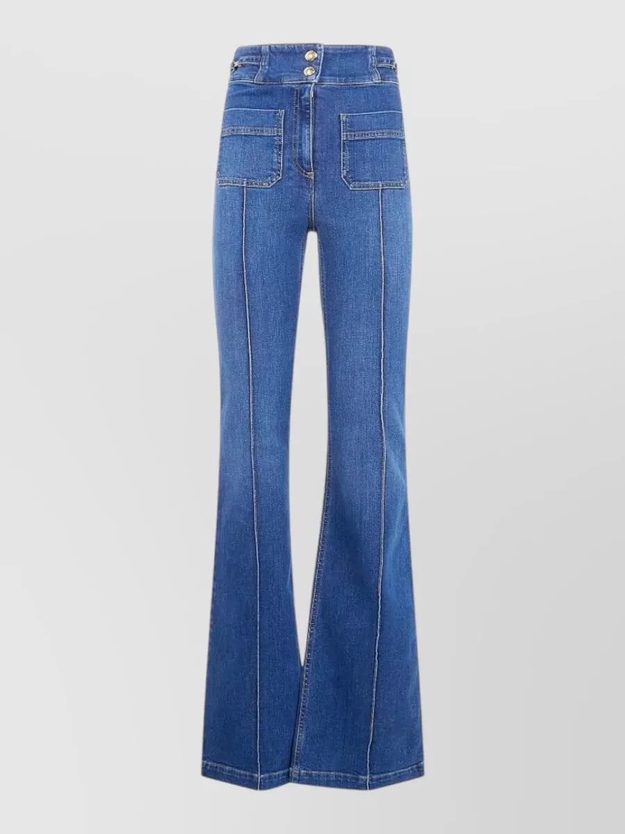 Elisabetta Franchi flared denim trousers seam front back pockets