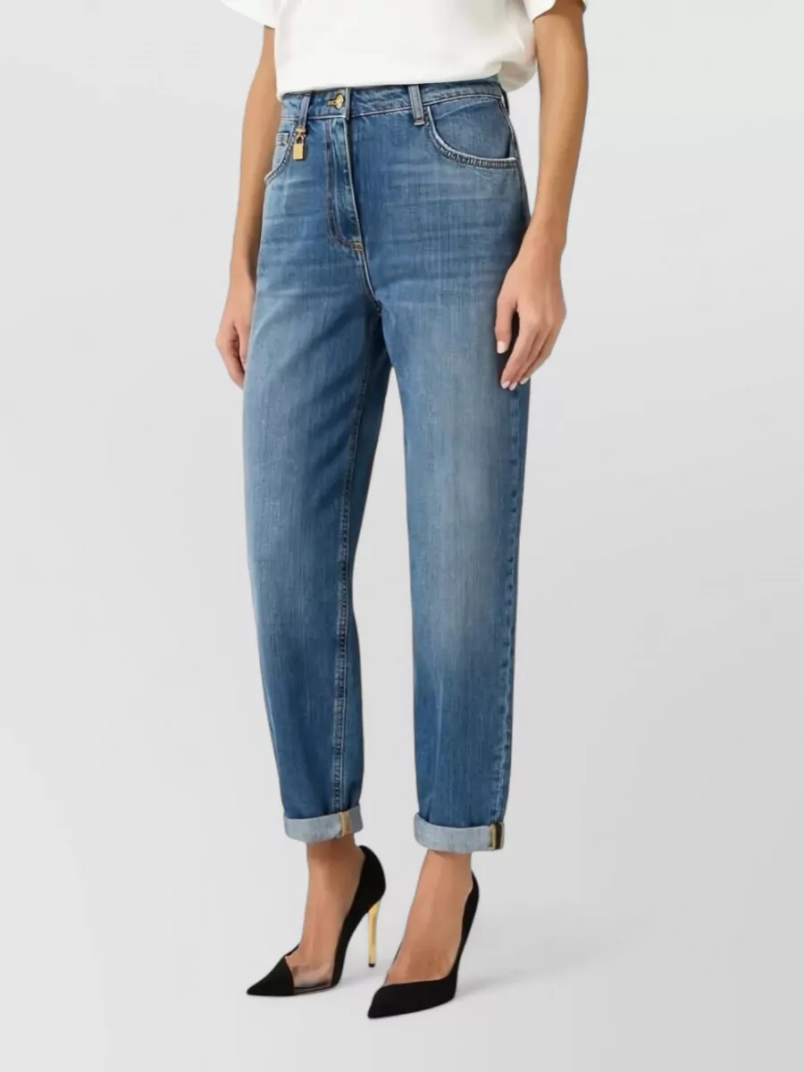 Elisabetta Franchi denim trousers padlock detail belt loops