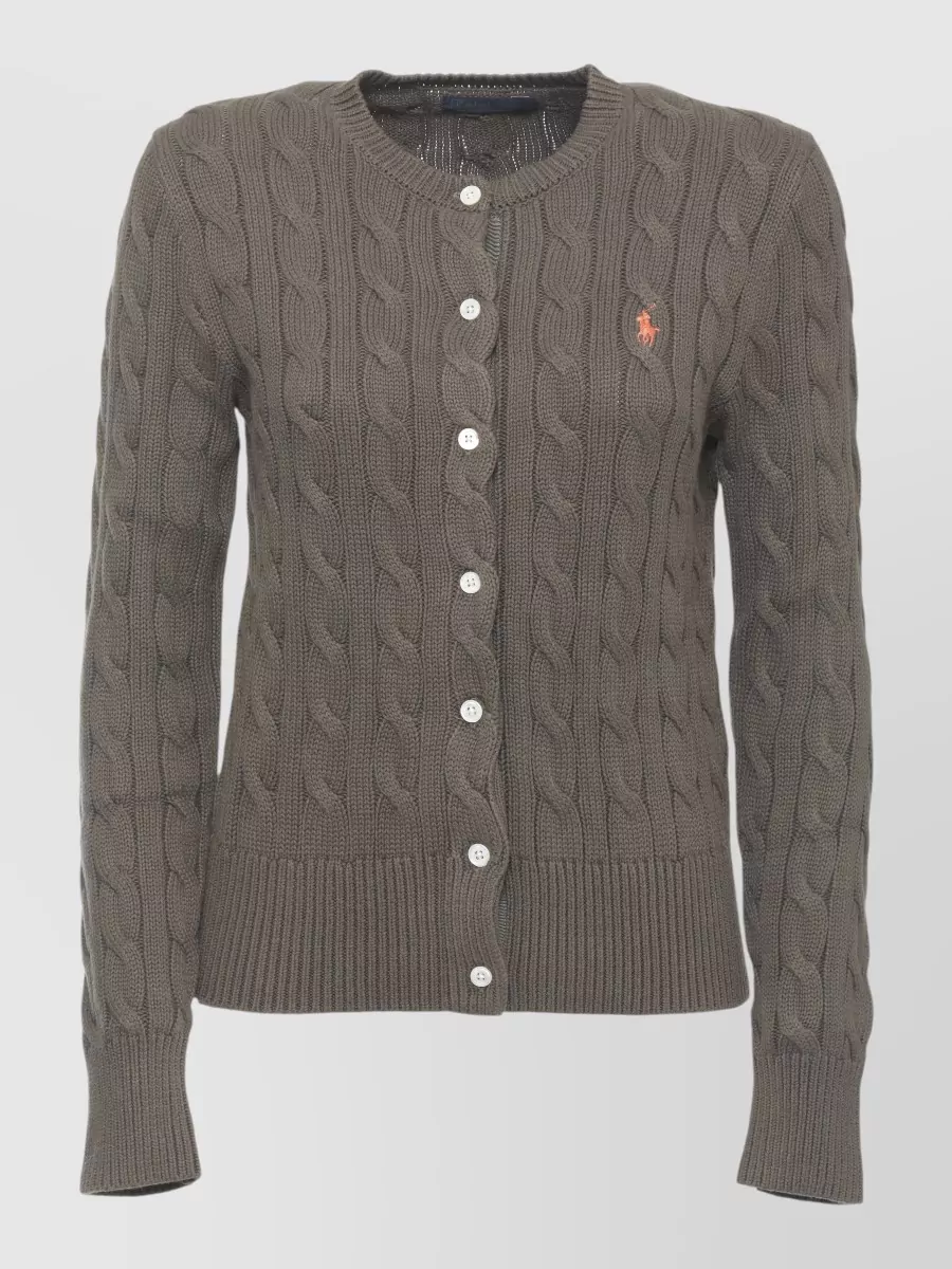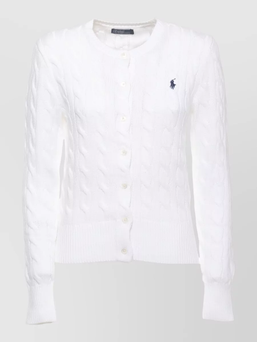 Ralph Lauren cotton cardigan crew neck long sleeves braids