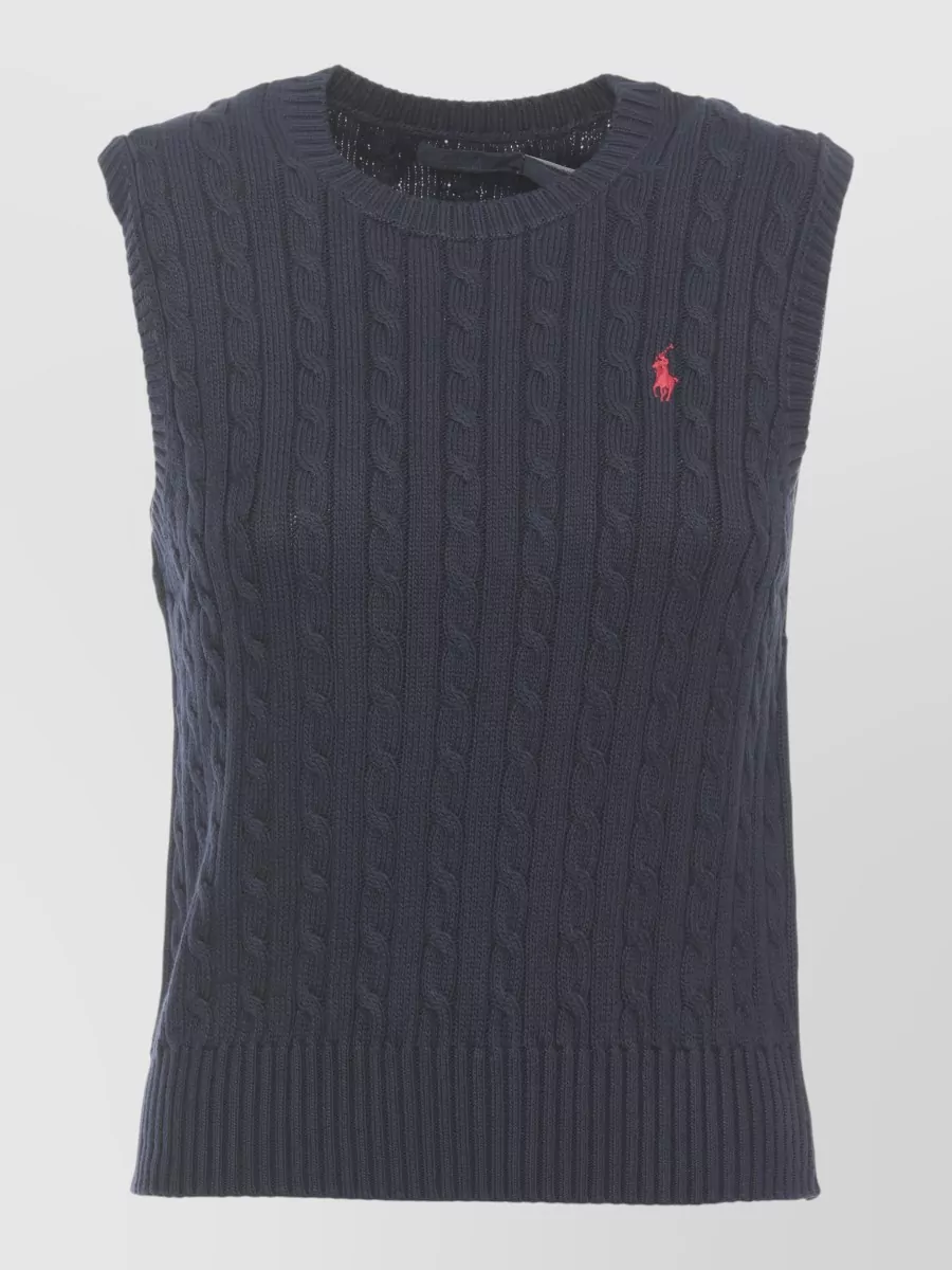 Ralph Lauren crew neck sleeveless braided knit sweater