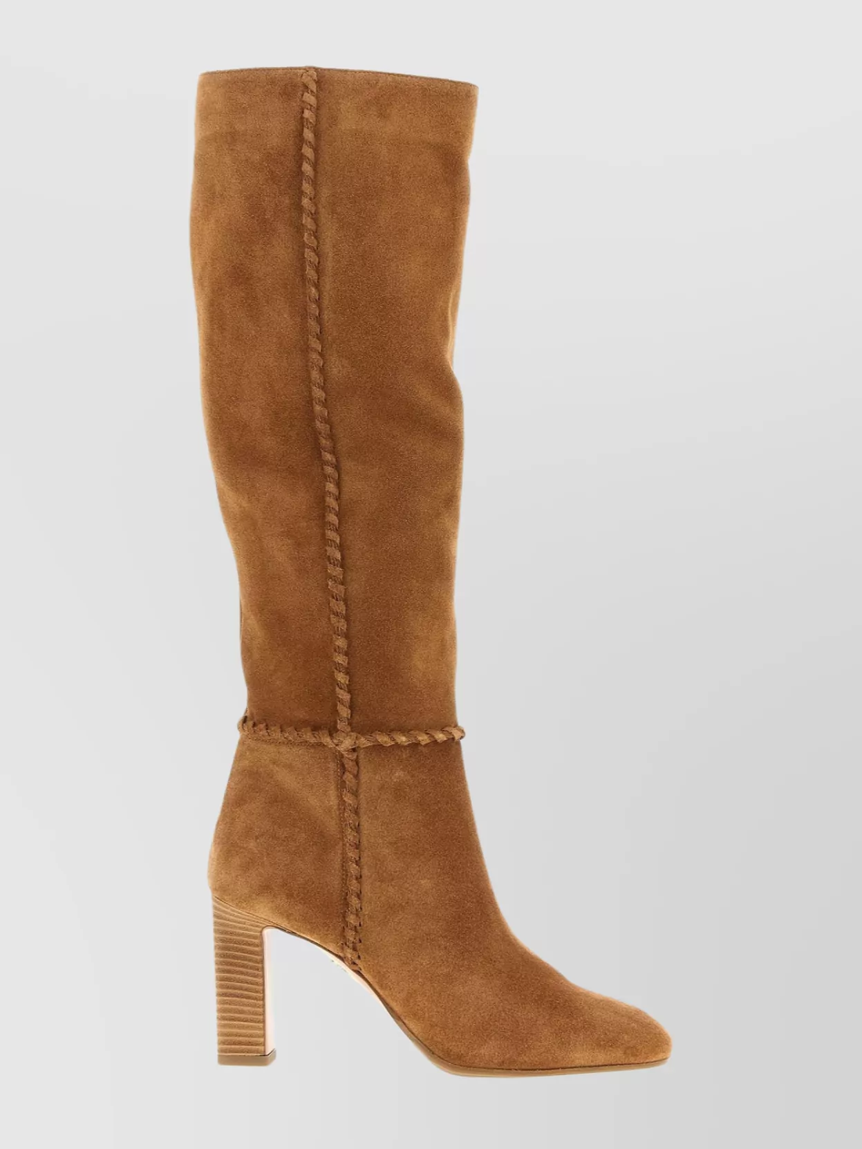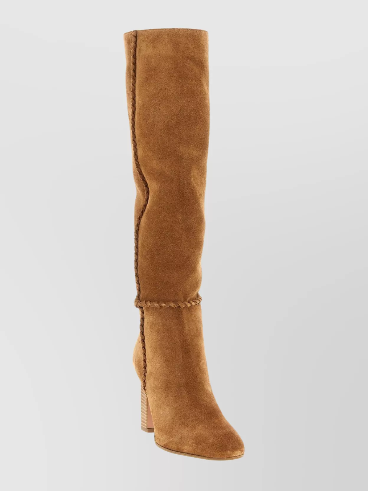 knee-high suede boots featuring braided detailing