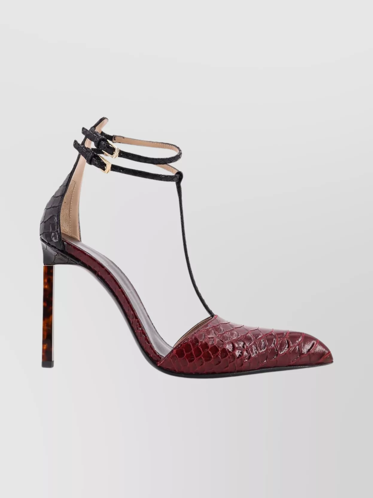 ankle strap pointed toe leather pump