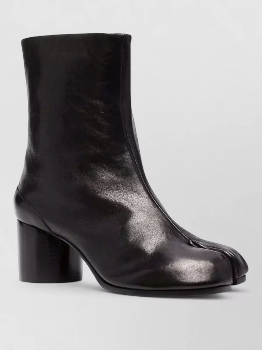 Discover more MAISON MARGIELA Boots MAISON MARGIELA Shoes BootsFits as a structured mid-calf boot with a secure, enclosed feel around the foot and ankle, supported by a chunky heel and split toe shape