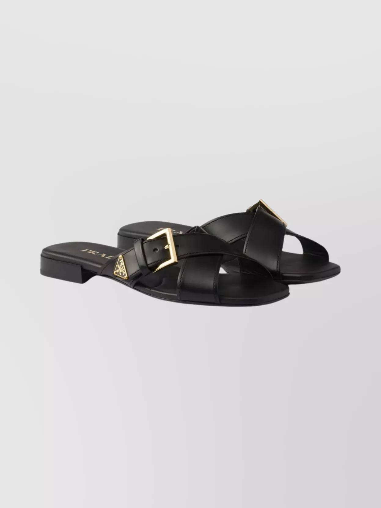 Prada cross strap flat slides buckle