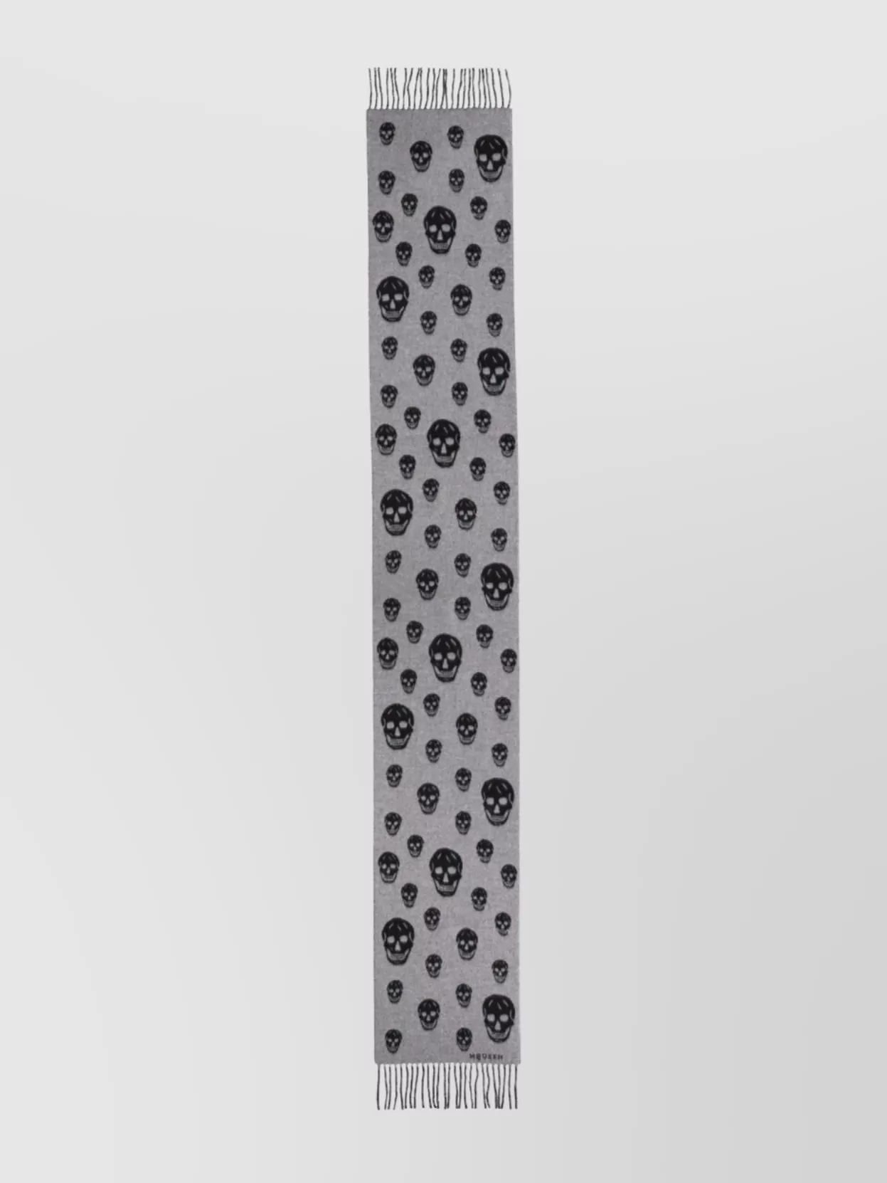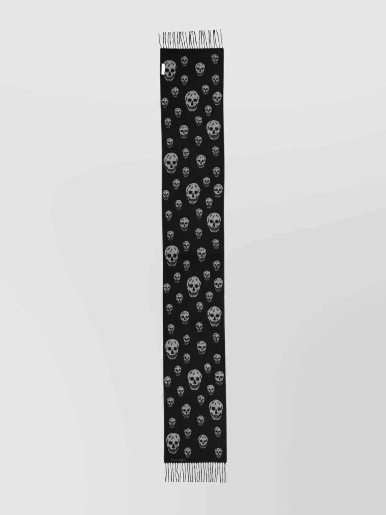 Alexander McQueen skull pattern rectangular scarf with fringed edges