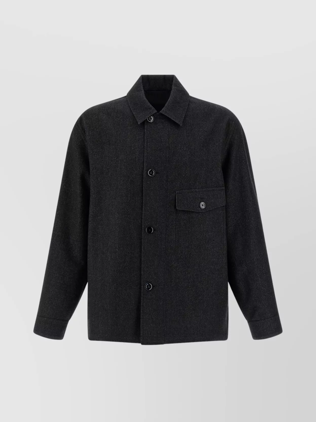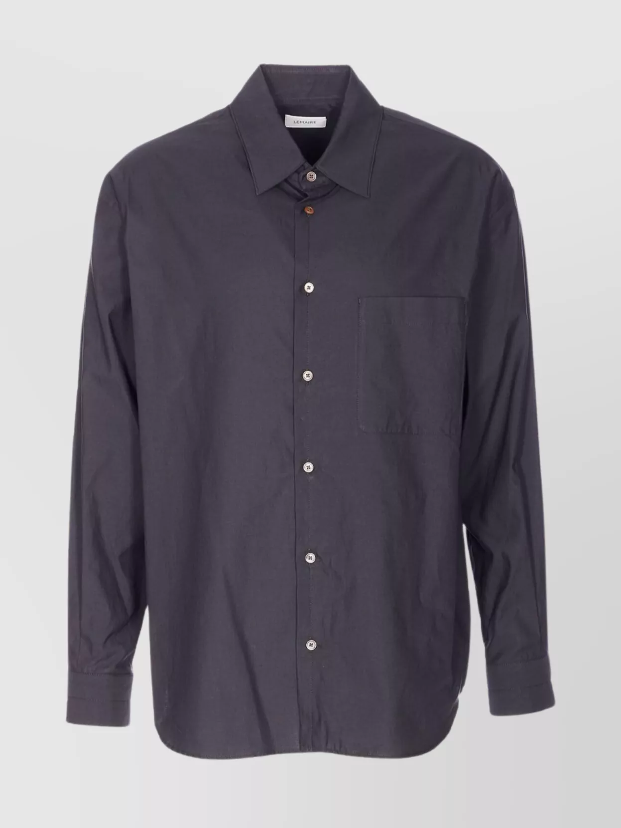 Lemaire relaxed fit denim shirt featuring front pockets and long sleeves