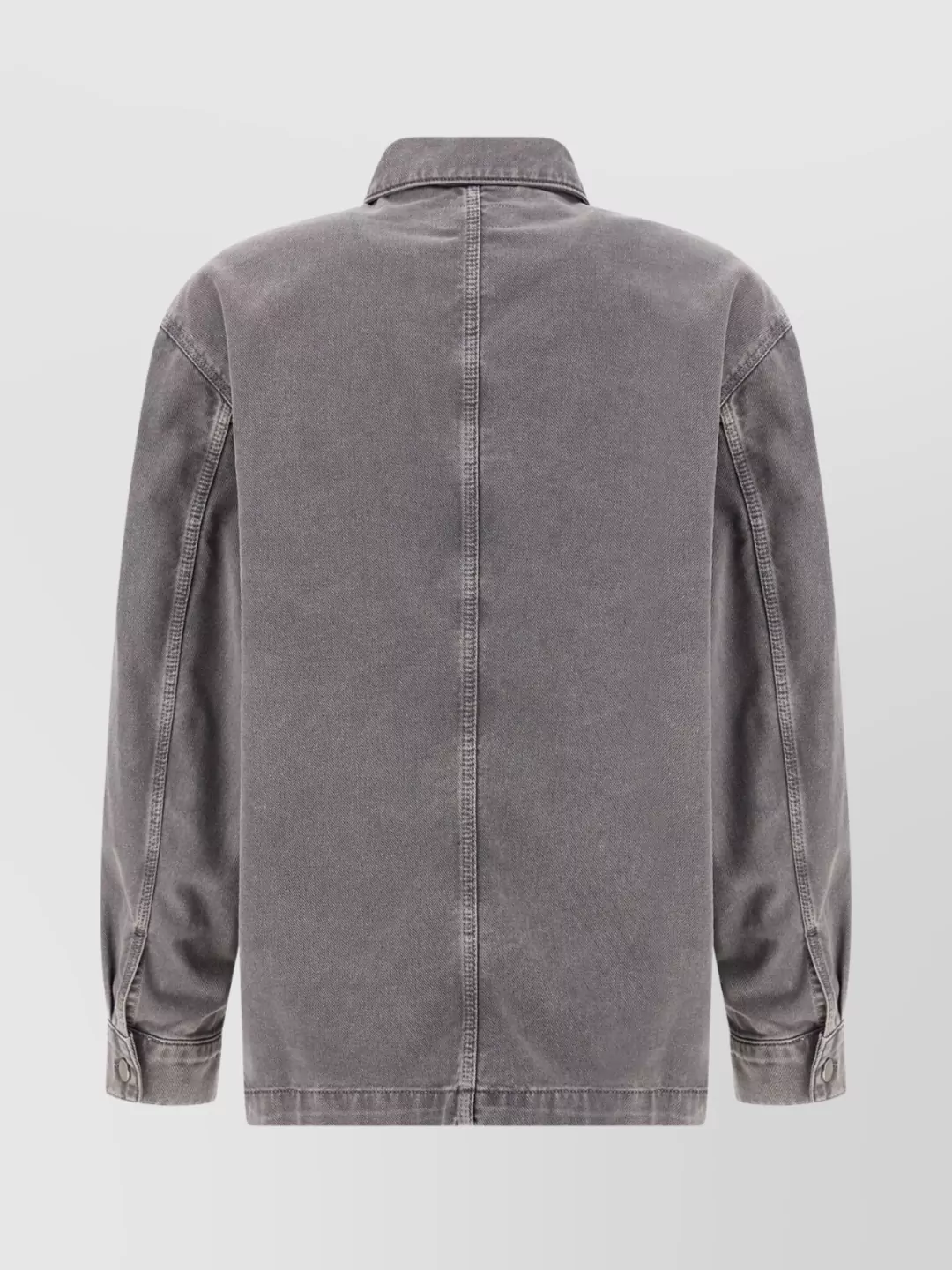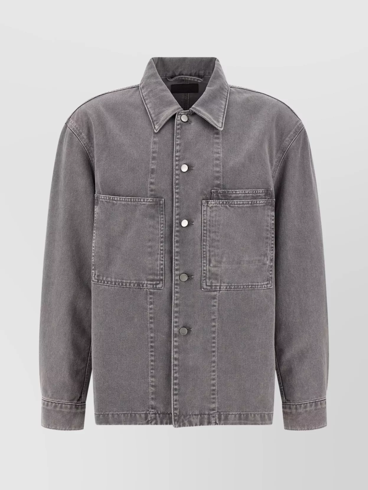 relaxed fit denim shirt featuring front pockets and long sleeves