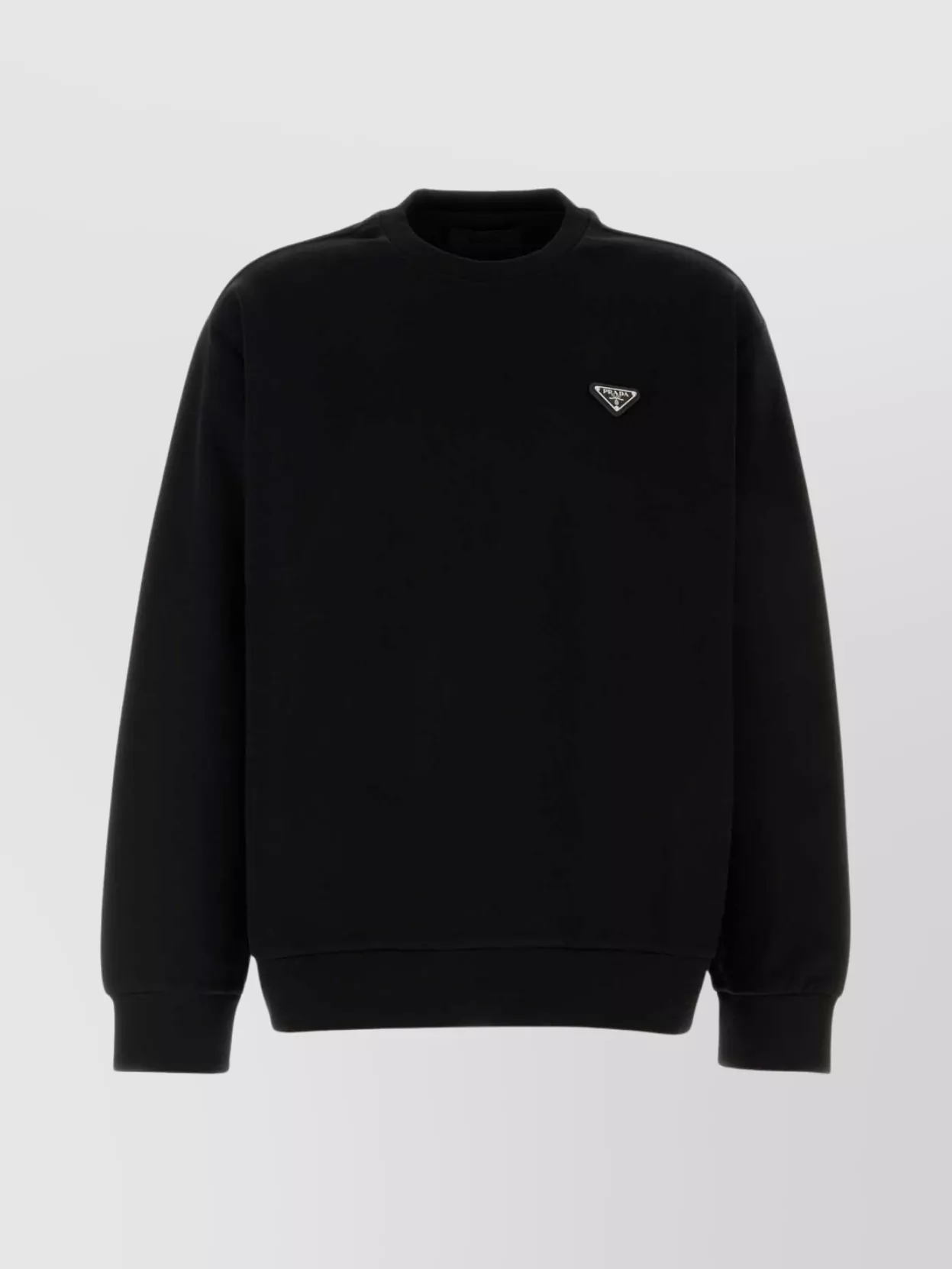 Prada wool crew neck sweater with ribbed cuffs and hem