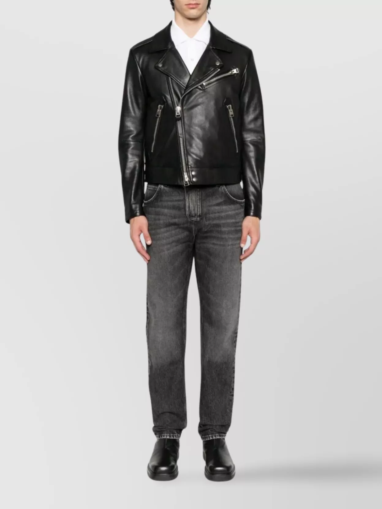 zipper detailed biker style denim