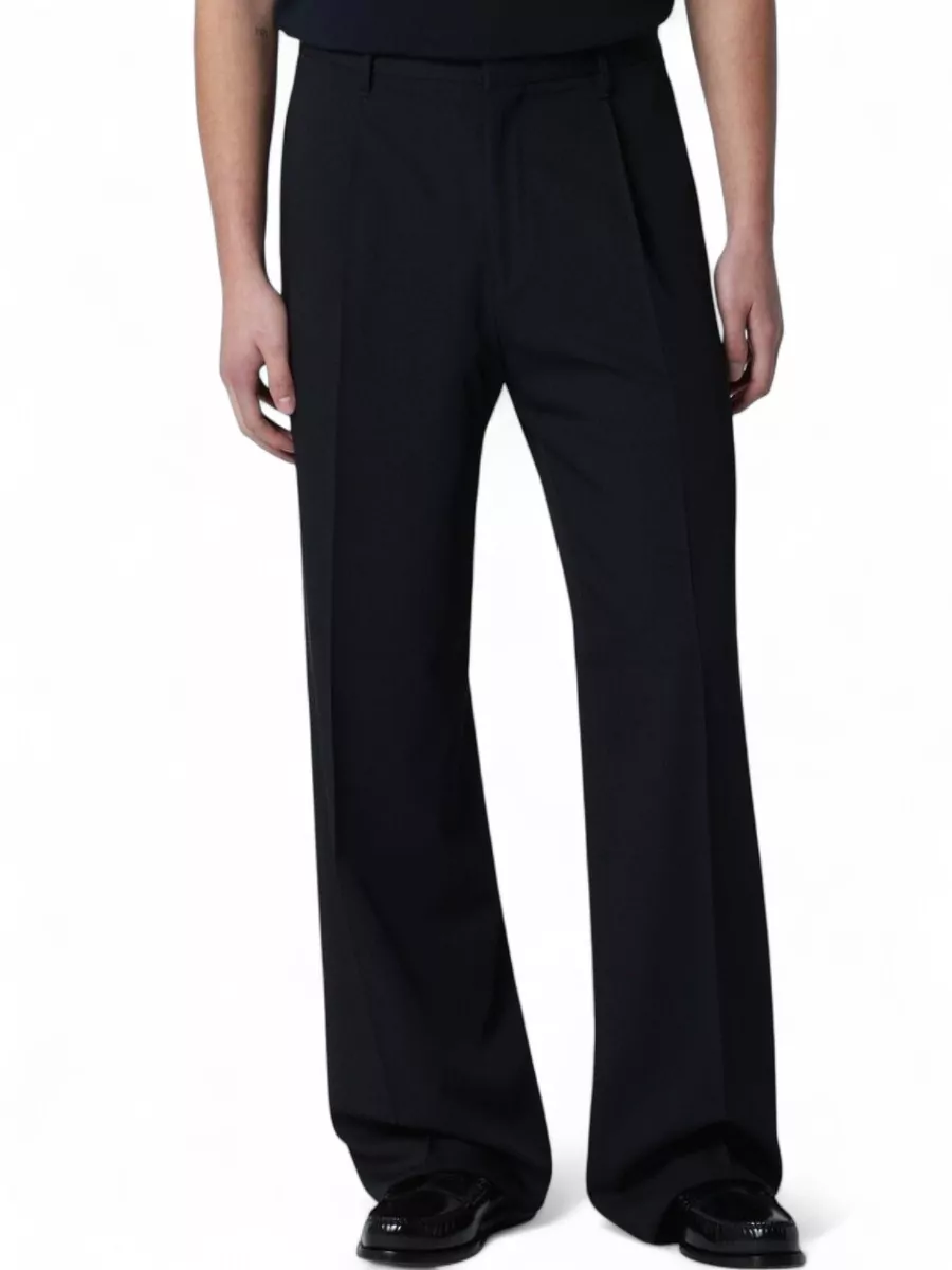 wool trousers wide leg pleated front