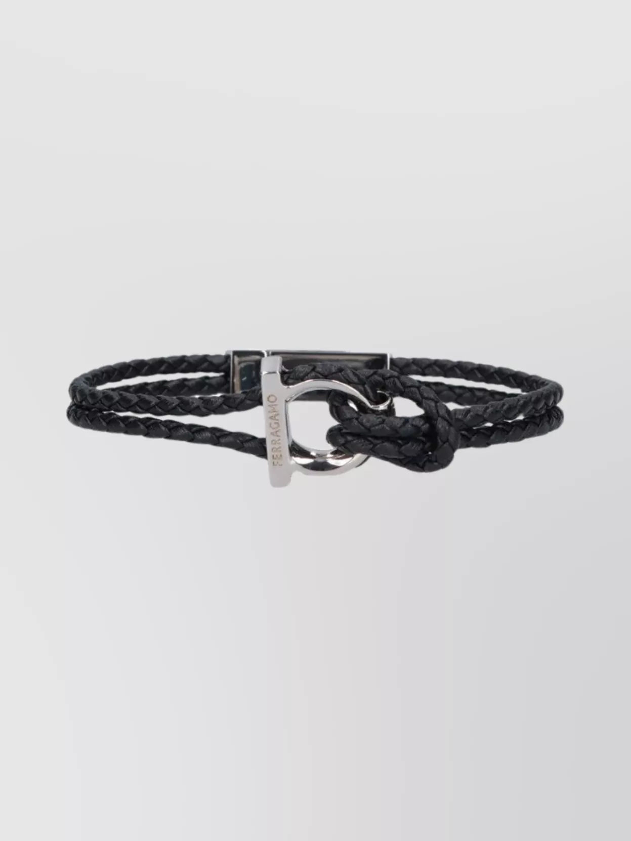 Ferragamo leather braided bracelet polished finish