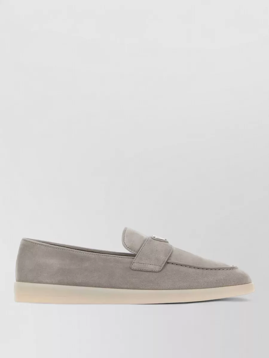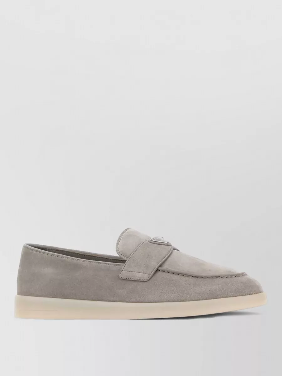Prada suede loafers with round toe and stitching