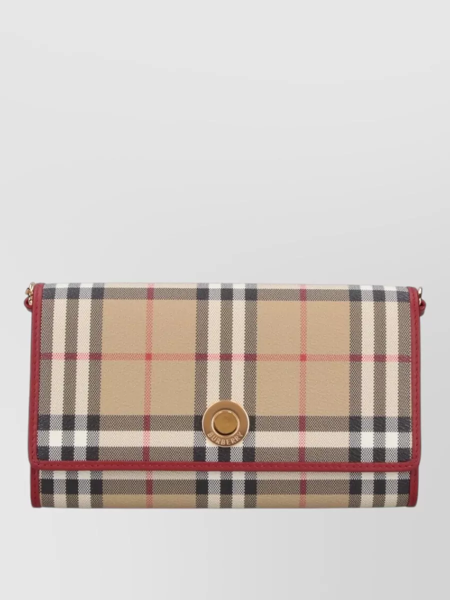 Burberry check pattern wallet gold tone chain strap