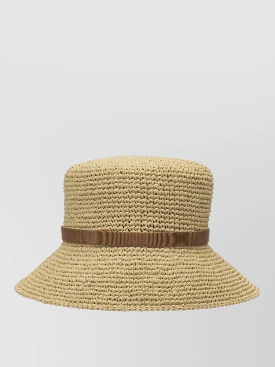 wide brim ribbon detail woven hat