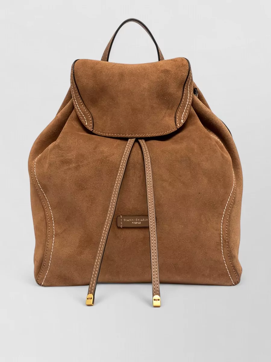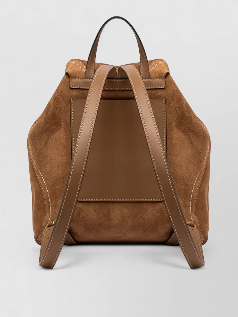 Longchamp leather trim top handle adjustable shoulder straps backpack