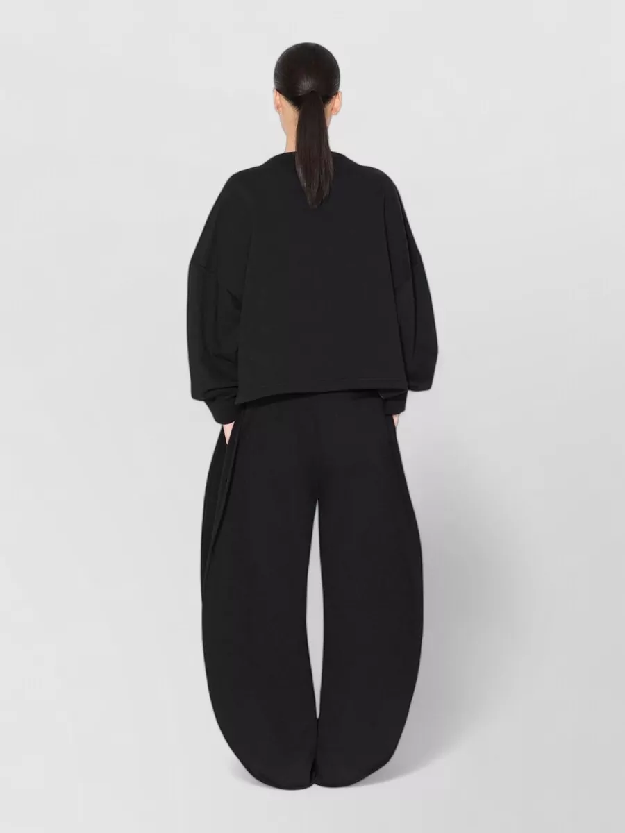 curved loose fit wide leg trousers