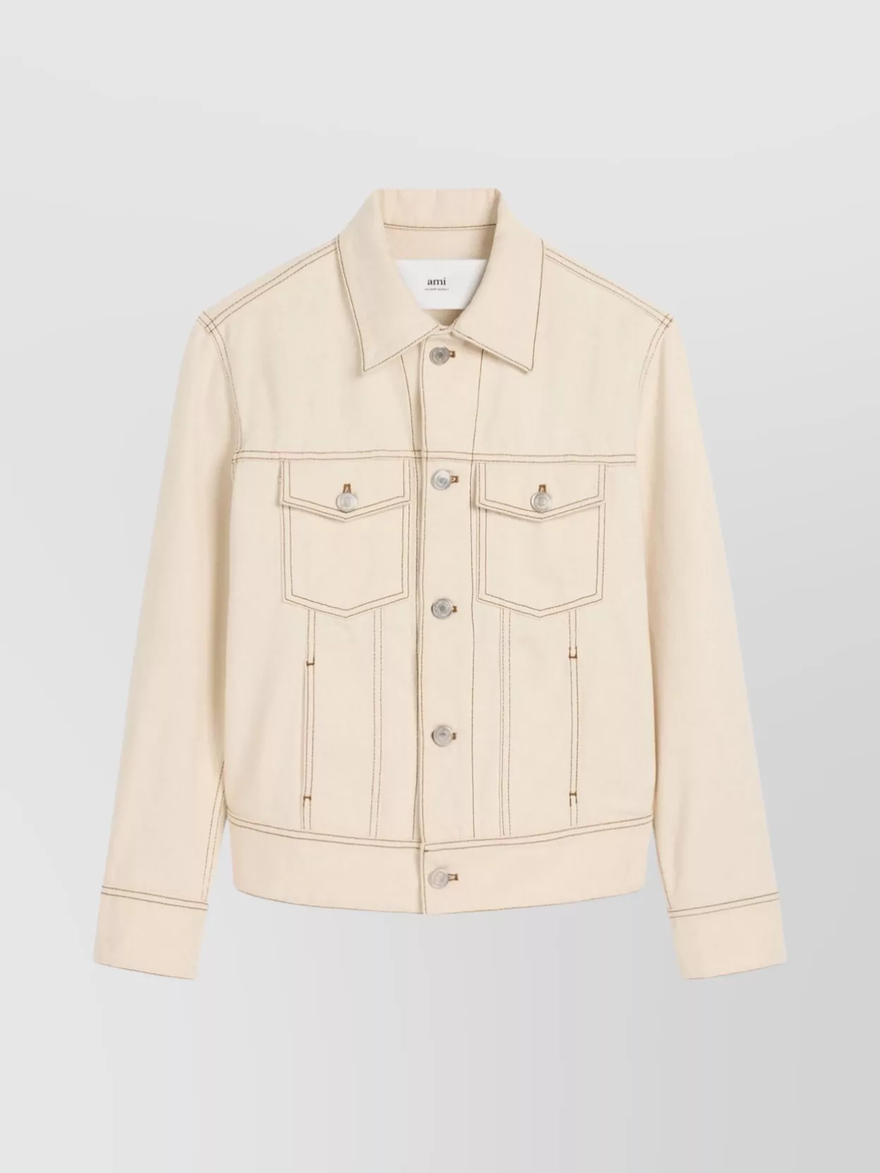 Ami Paris cotton jacket with long sleeves and pointed collar