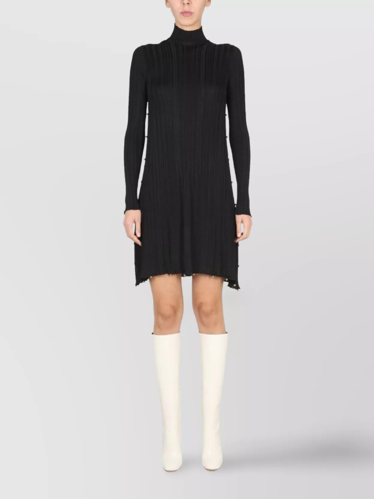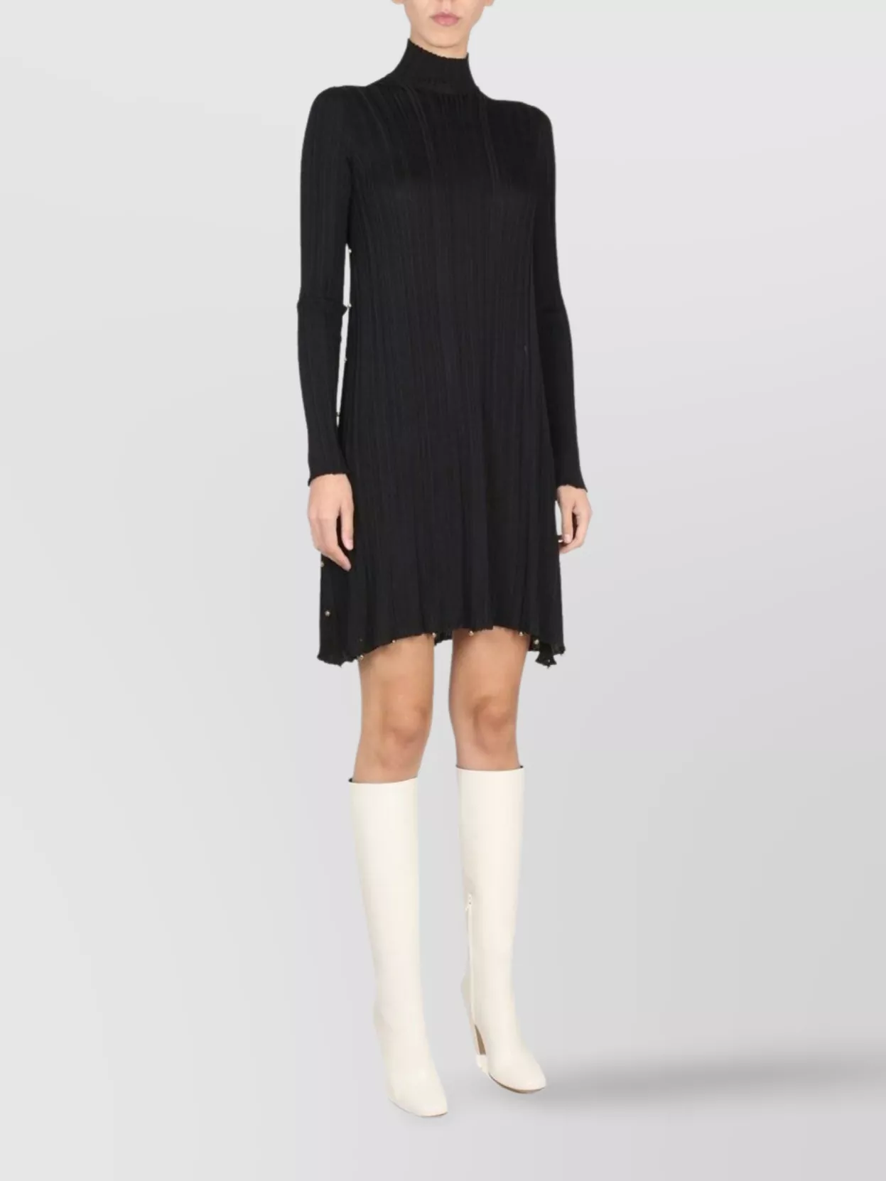 flared hem high neckline long sleeves