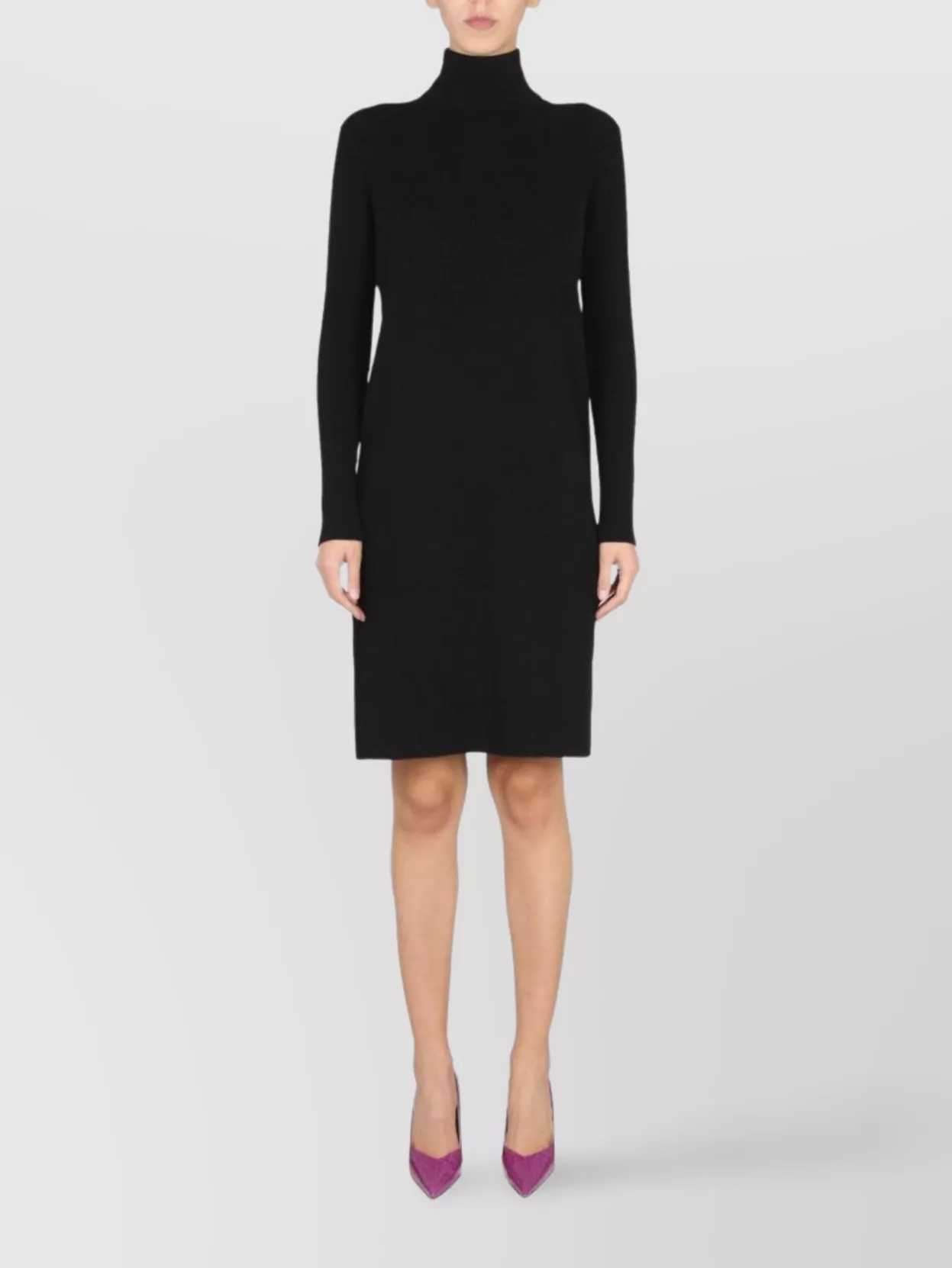 high neck long sleeve knit dress